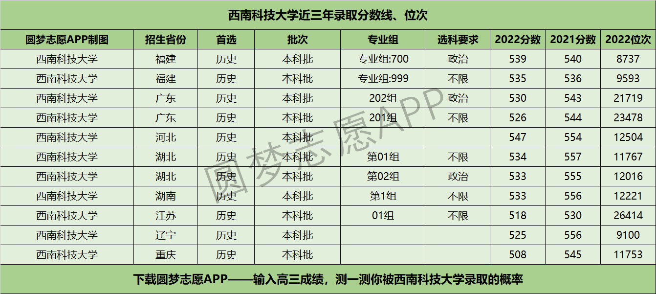 四、西南科技大学近年录取分数线及位次【首选历史版】