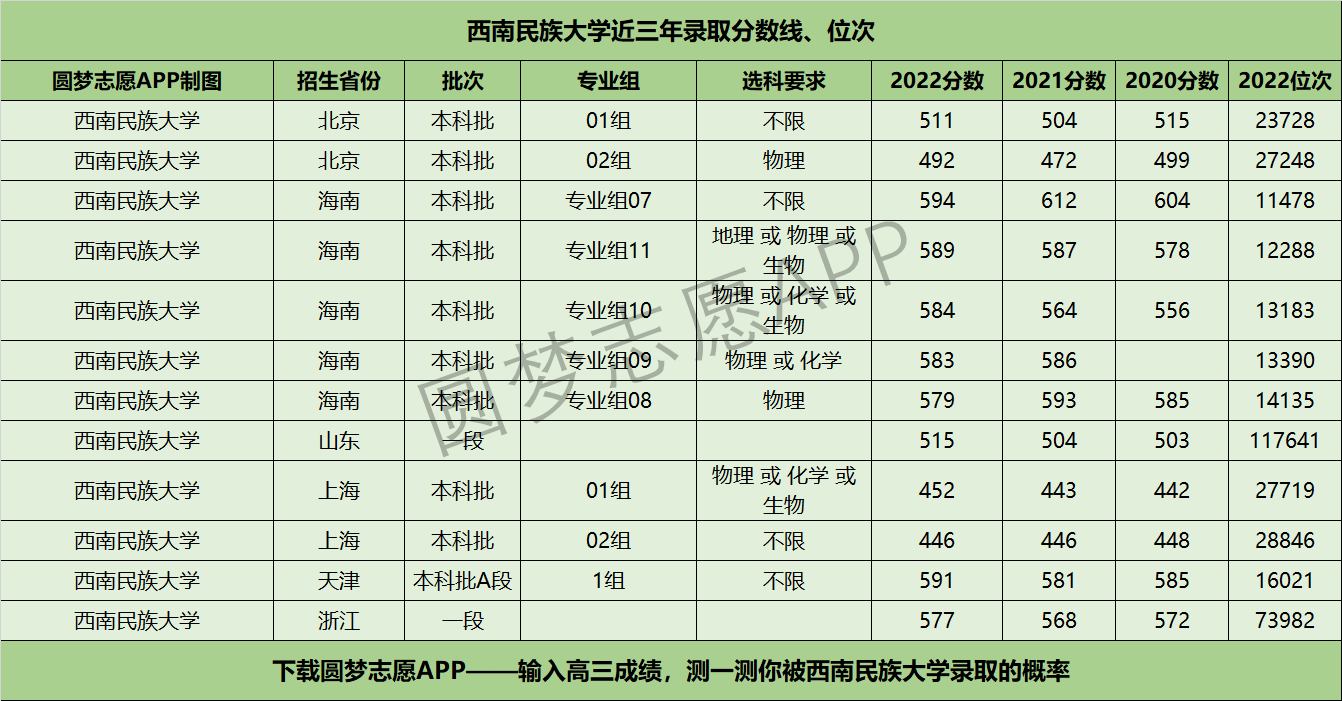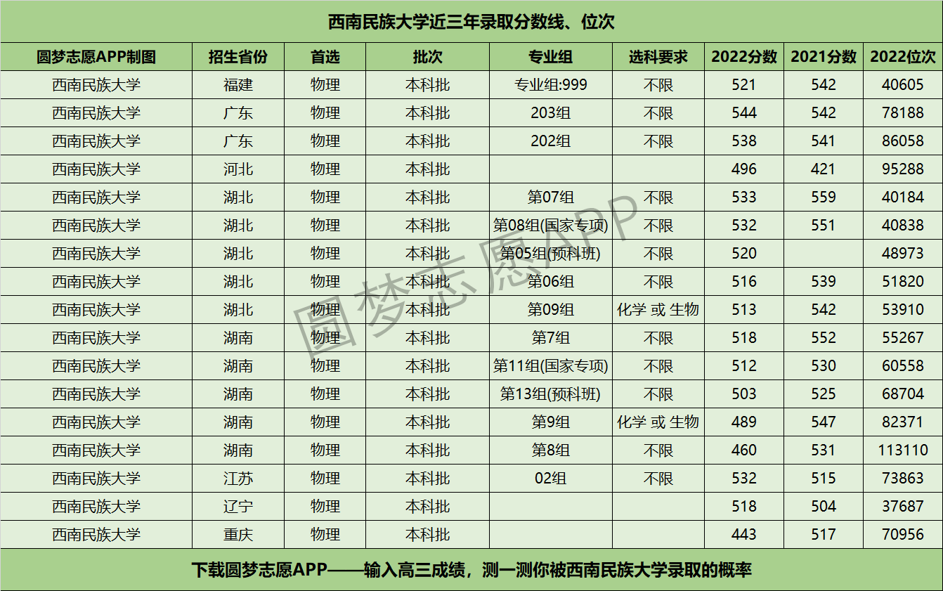 三、西南民族大学近年录取分数线及位次【首选物理版】