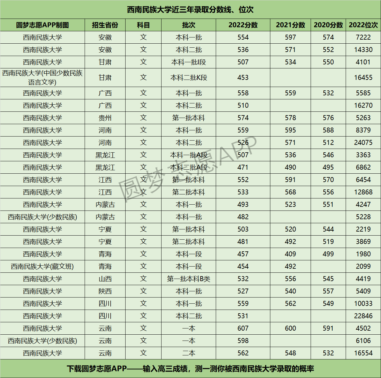 二、西南民族大学近三年录取分数线及位次【文科版】