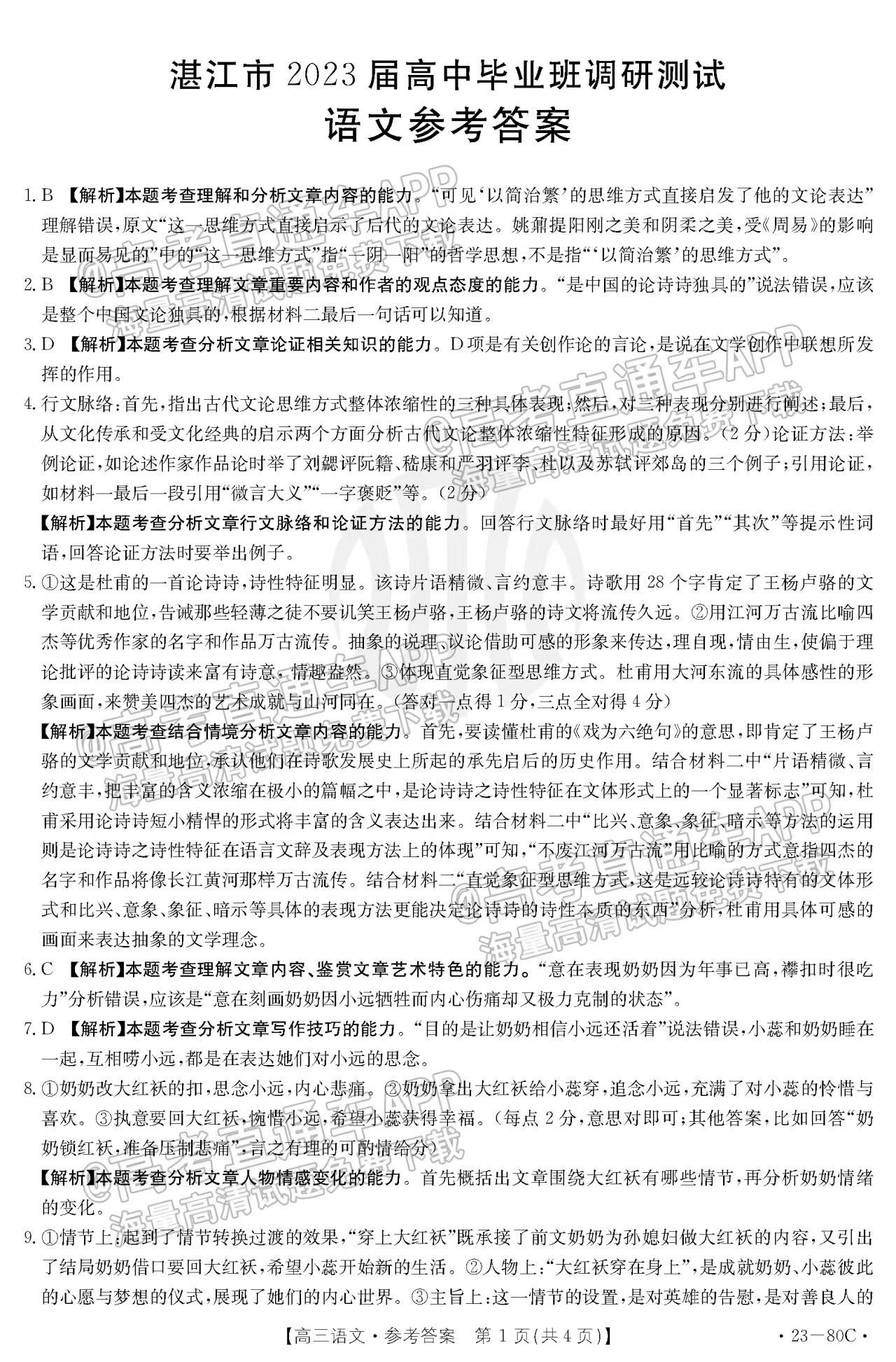 2023广东湛江高三10月调研考试于2022年10月20日开考,各科试题及答案,本文将在考后更新。高考前的模拟考试对于考生来说非常重要,不仅也有利于查漏补缺,调整后续复习计划,而是有利于帮助考生调整心态,合理规划时间等。本文将公布2023湛江高三10月调研语文试题及答案解析,供大家参考。