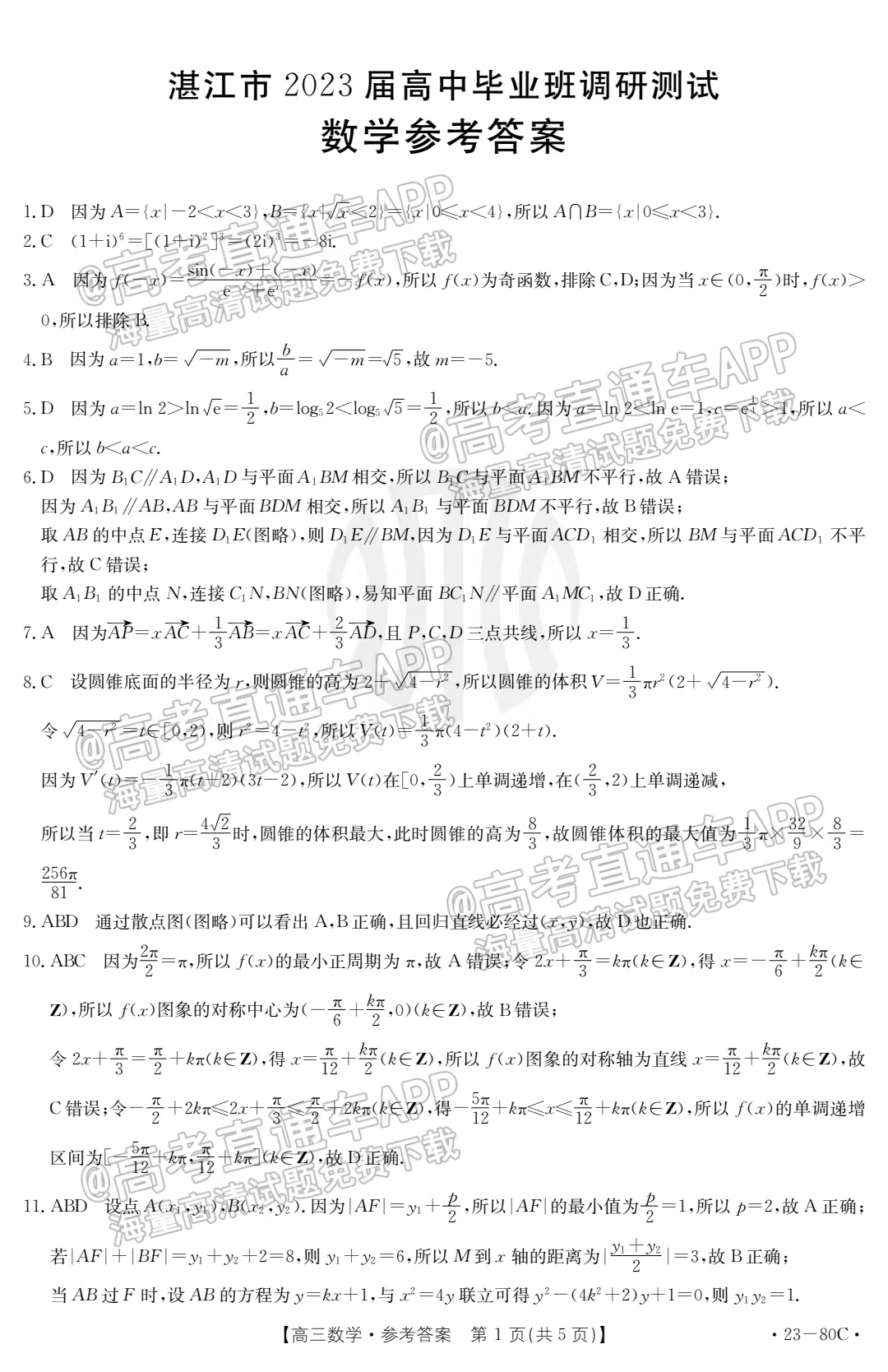2023广东湛江高三10月调研考试于2022年10月20日开考,各科试题及答案,本文将在考后更新。高考前的模拟考试对于考生来说非常重要,不仅也有利于查漏补缺,调整后续复习计划,而是有利于帮助考生调整心态,管理考试时间等。本文将公布2023湛江高三10月调研数学试题及答案解析,供大家参考。