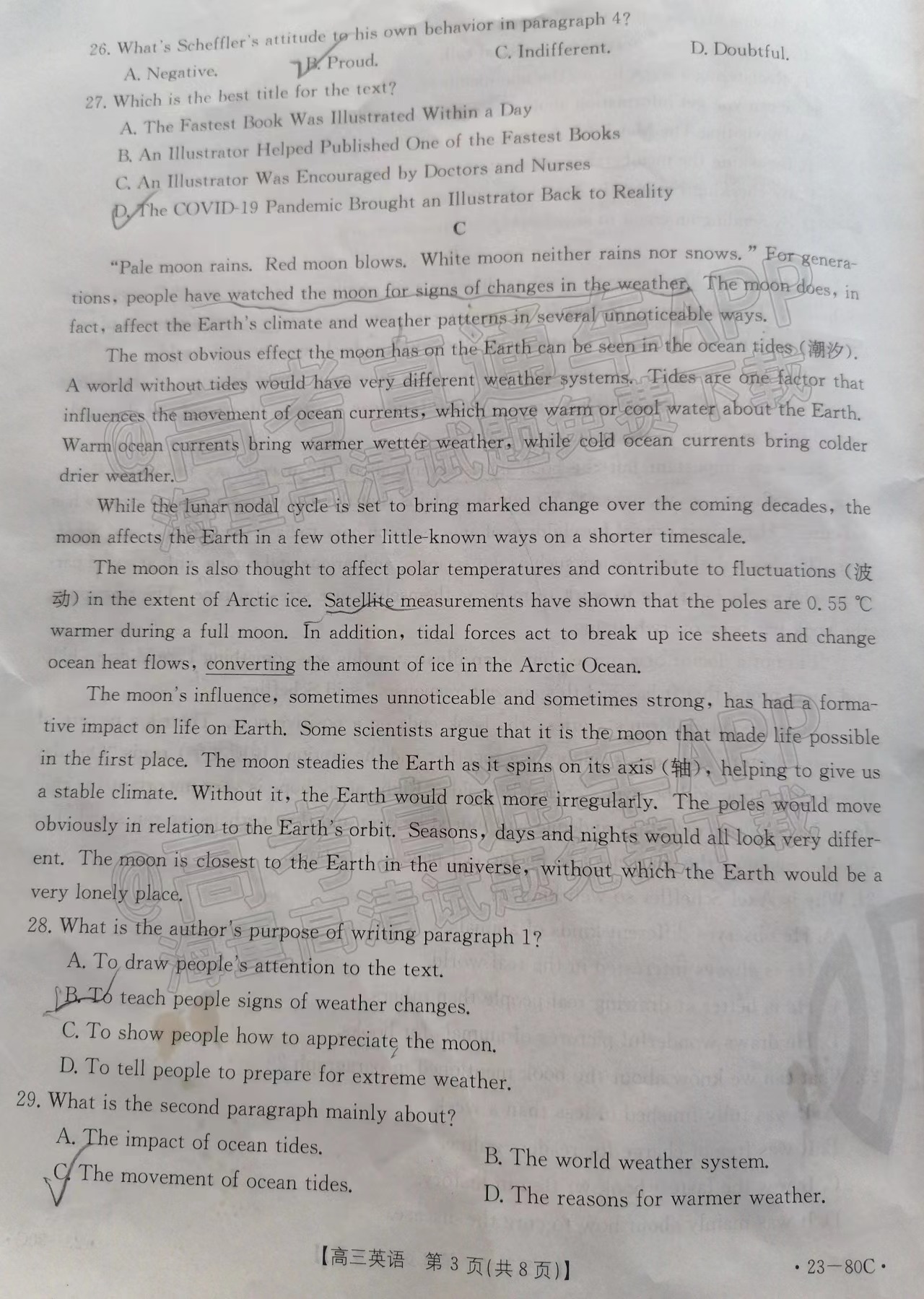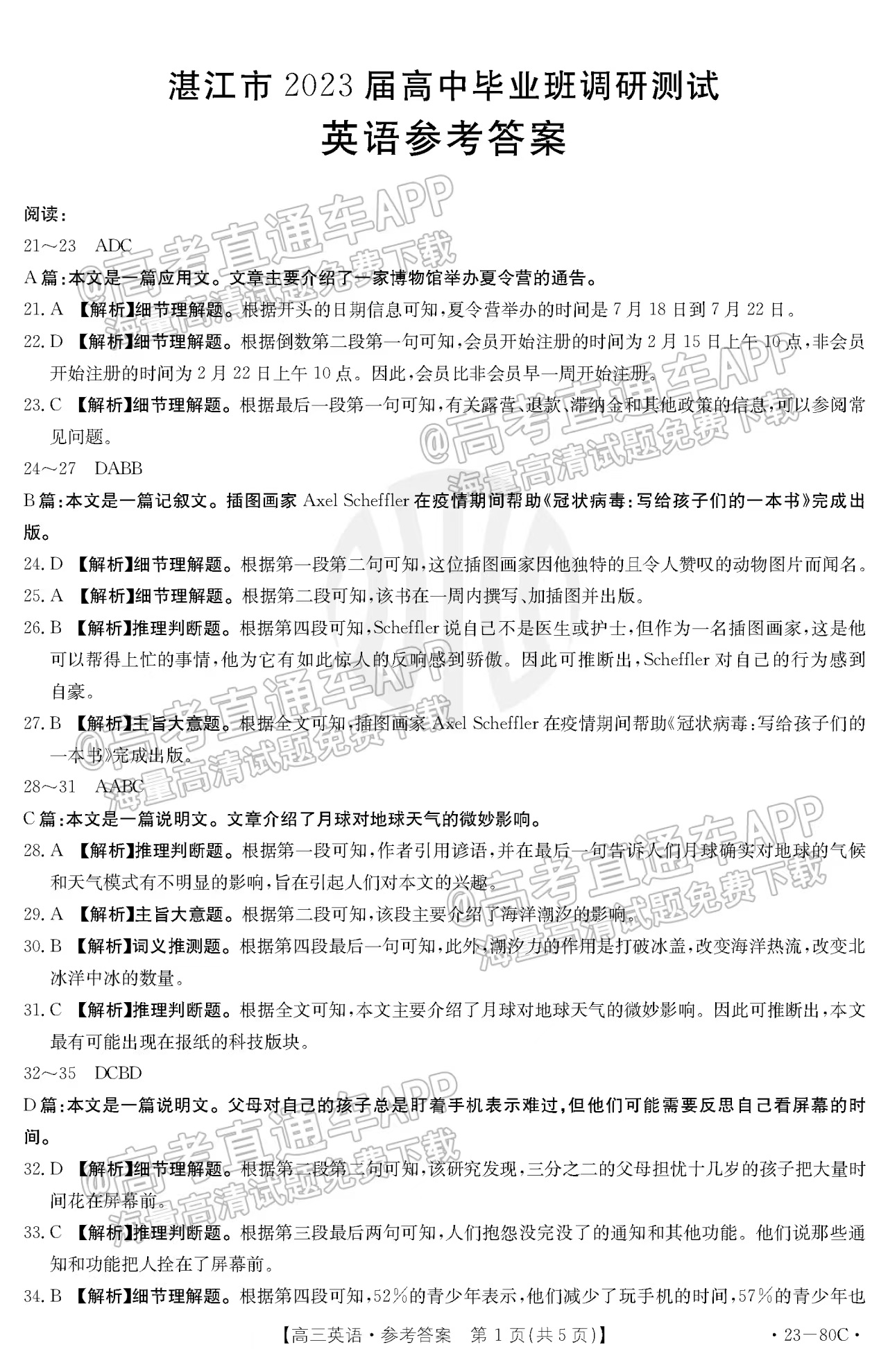 2023广东湛江高三10月调研考试于2022年10月20日开考,各科试题及答案,本文将在考后更新。高考前的模拟考试对于考生来说非常重要,不仅也有利于查漏补缺,调整后续复习计划,而是有利于帮助考生调整心态,合理规划时间等。本文将公布2023湛江高三10月调研英语试题及答案解析,供大家参考。