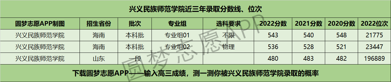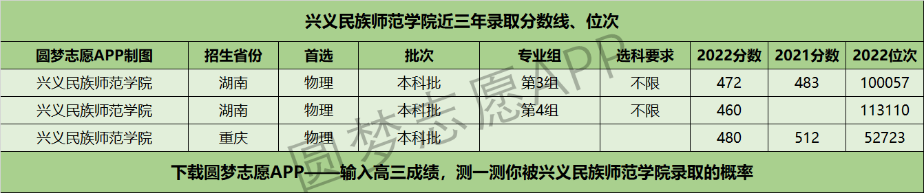 三、兴义民族师范学院近年录取分数线及位次【首选物理版】