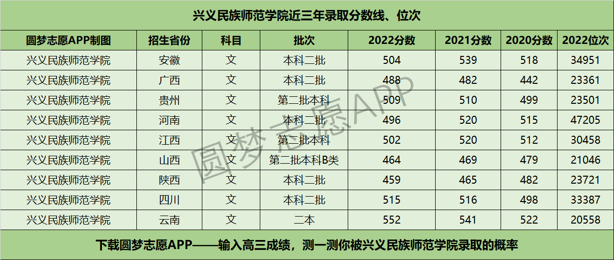 二、兴义民族师范学院近三年录取分数线及位次【文科版】