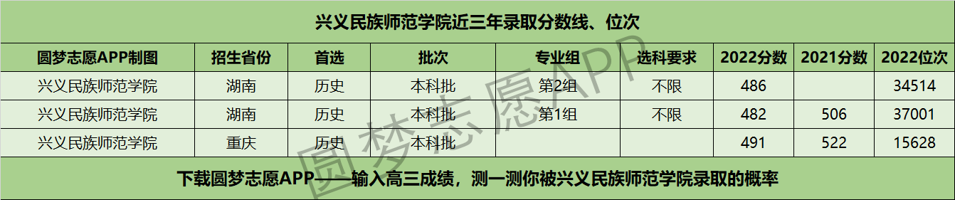 五、兴义民族师范学院近年录取分数线及位次【6选3省份】
