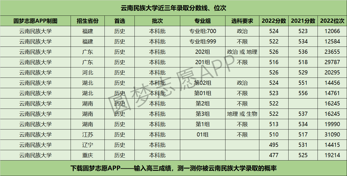 四、云南民族大学近年录取分数线及位次【首选历史版】
