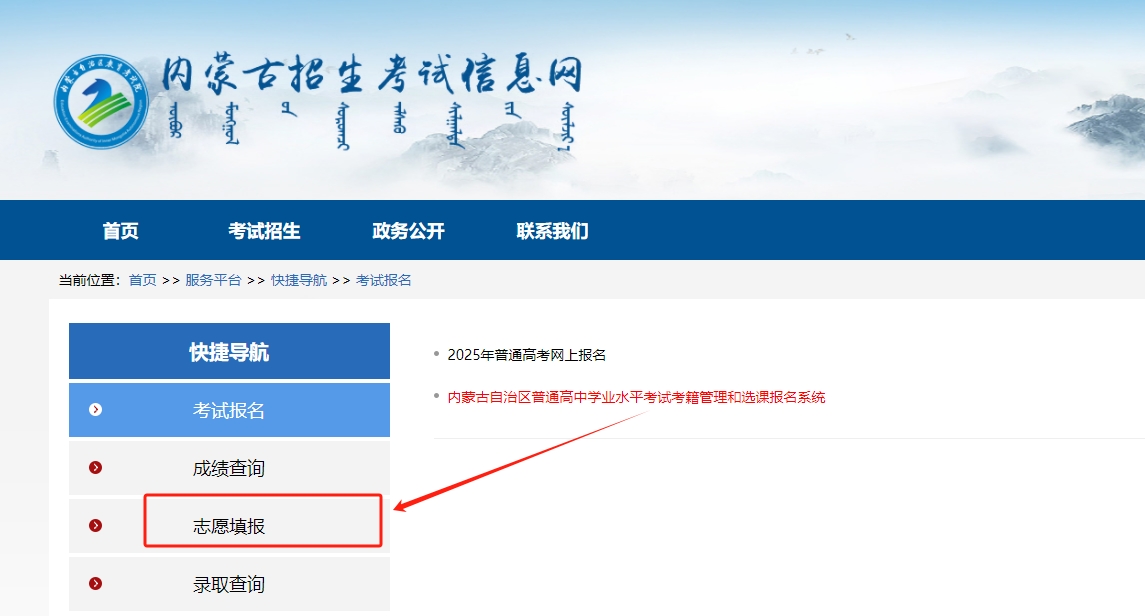 2025年内蒙古高考模拟志愿填报入口为内蒙古招生考试信息网,网址如下: