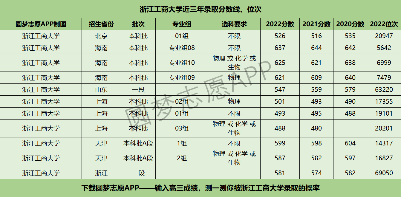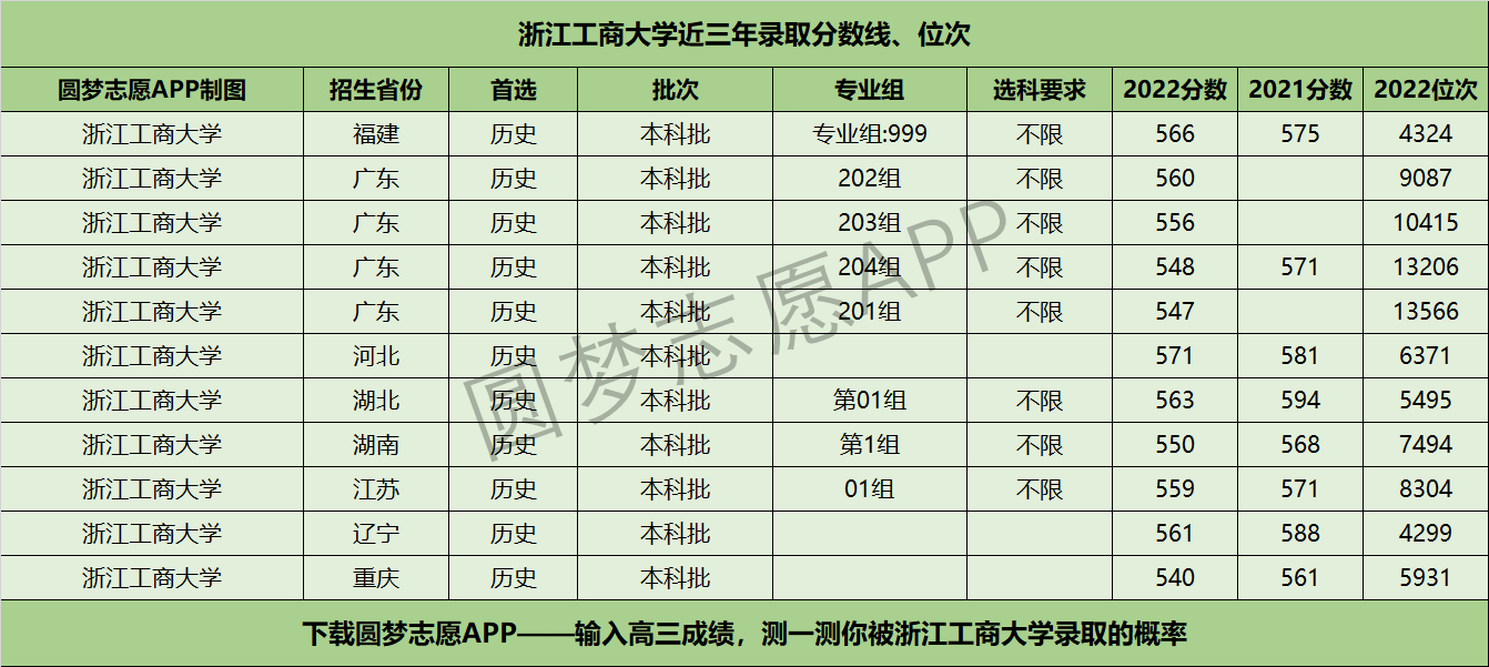 四、浙江工商大学近年录取分数线及位次【首选历史版】