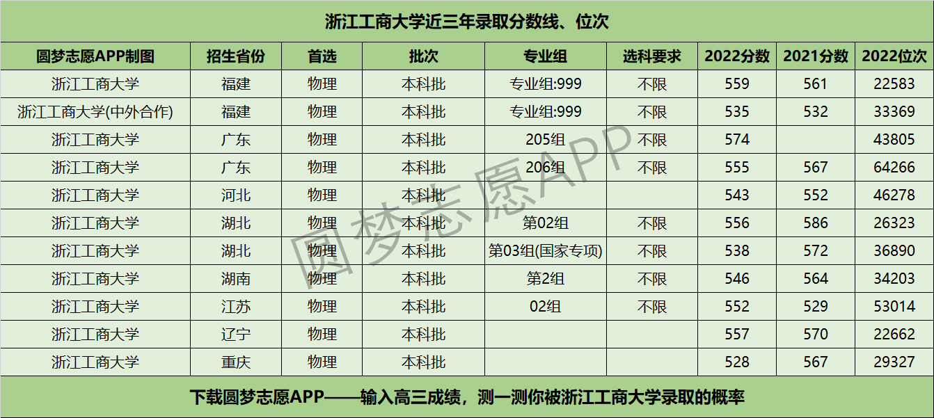 三、浙江工商大学近年录取分数线及位次【首选物理版】