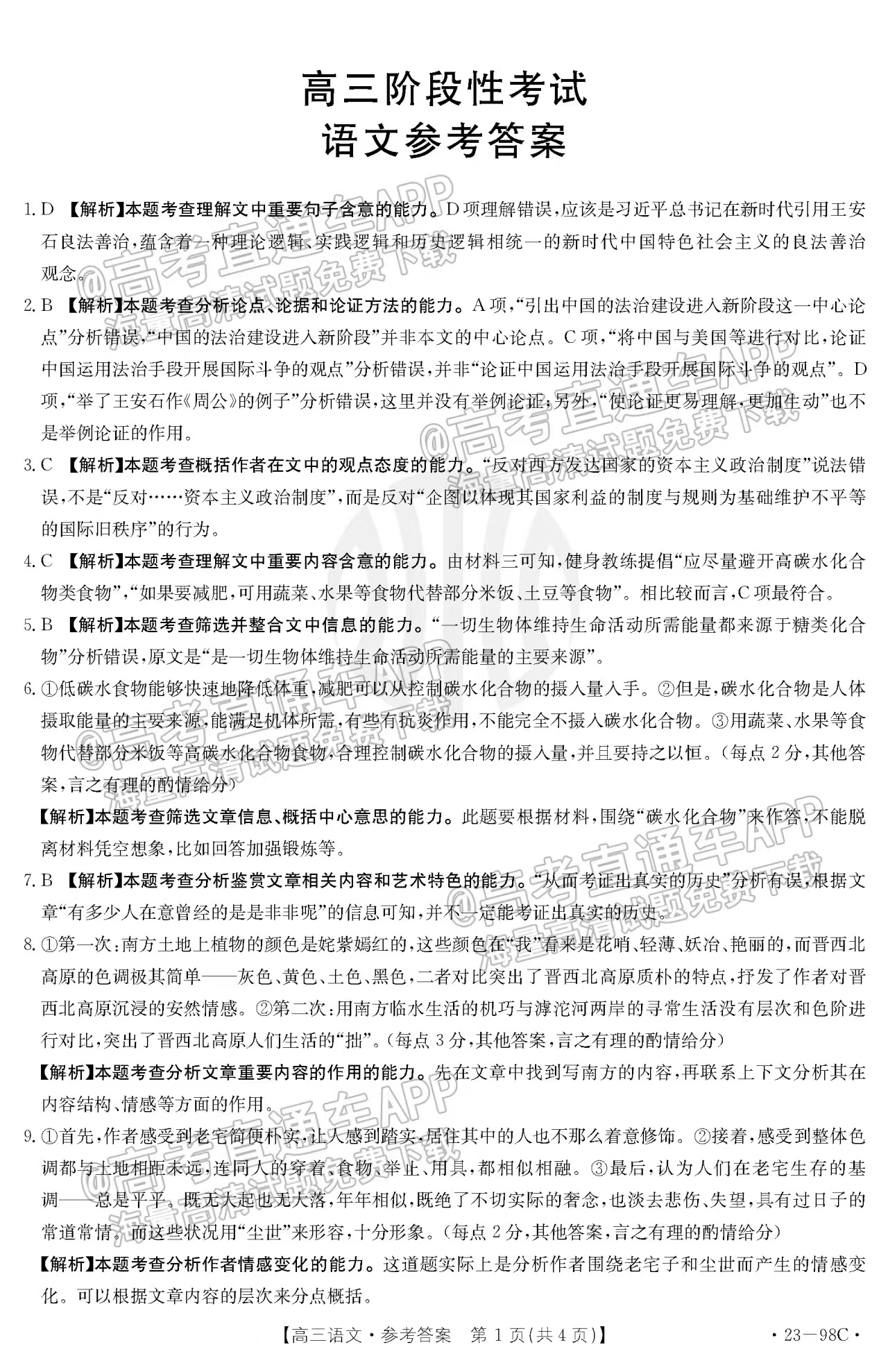 二、2023江西高三10月大联考23-98c语文参考答案