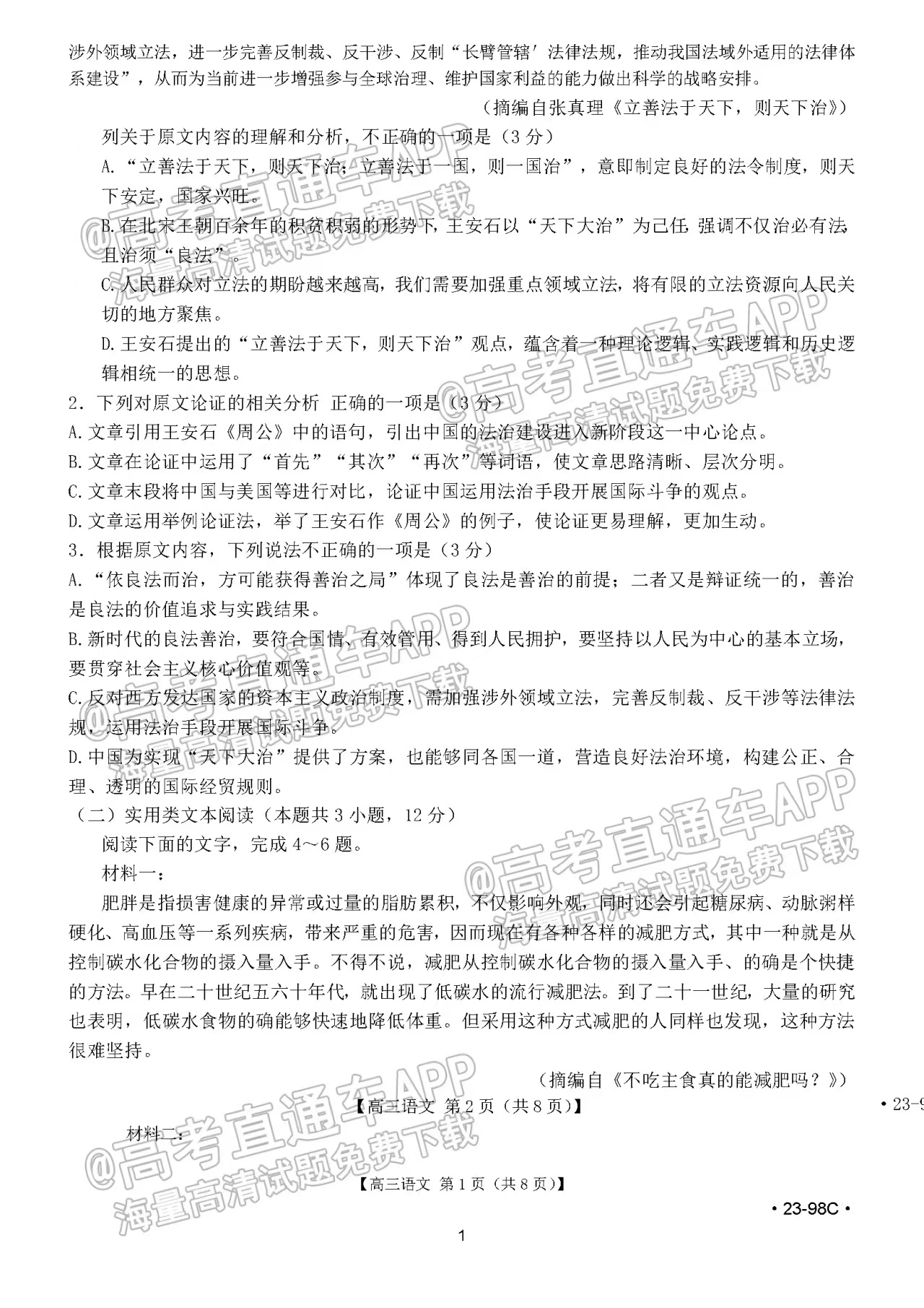 一、2023江西高三10月大联考23-98c语文试卷
