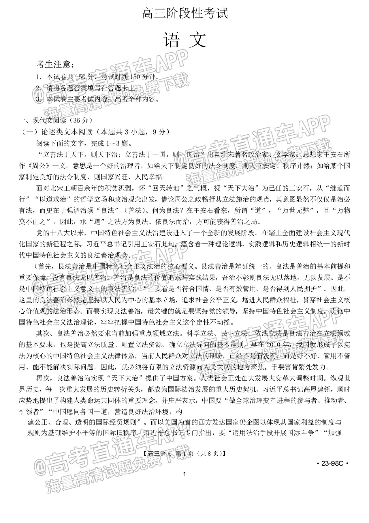 2023江西高三10月大联考23-98c将于2022年10月27日开考,考试结束后本文将更新2023江西高三10月大联考23-98c语文答案及试卷,下文为小编搜集整理的2023江西高三10月大联考23-98c语文试题及参考答案,供大家参考。