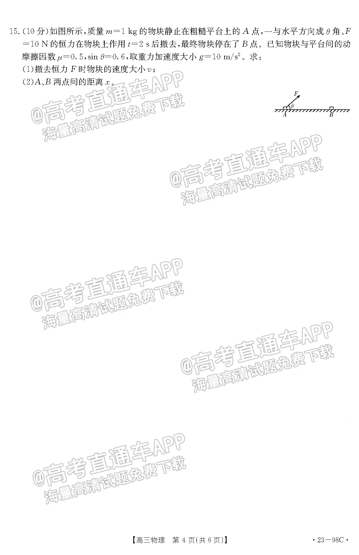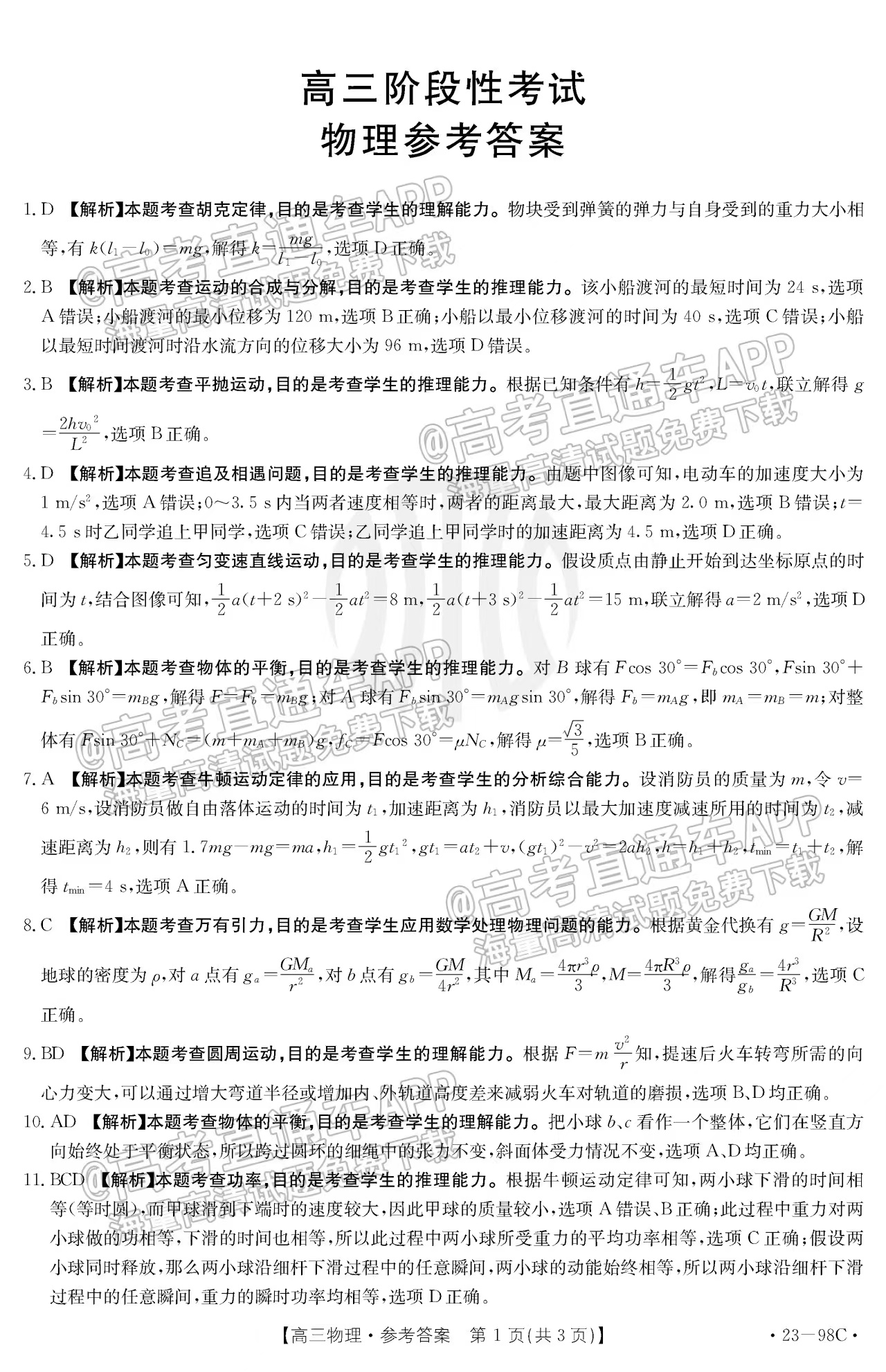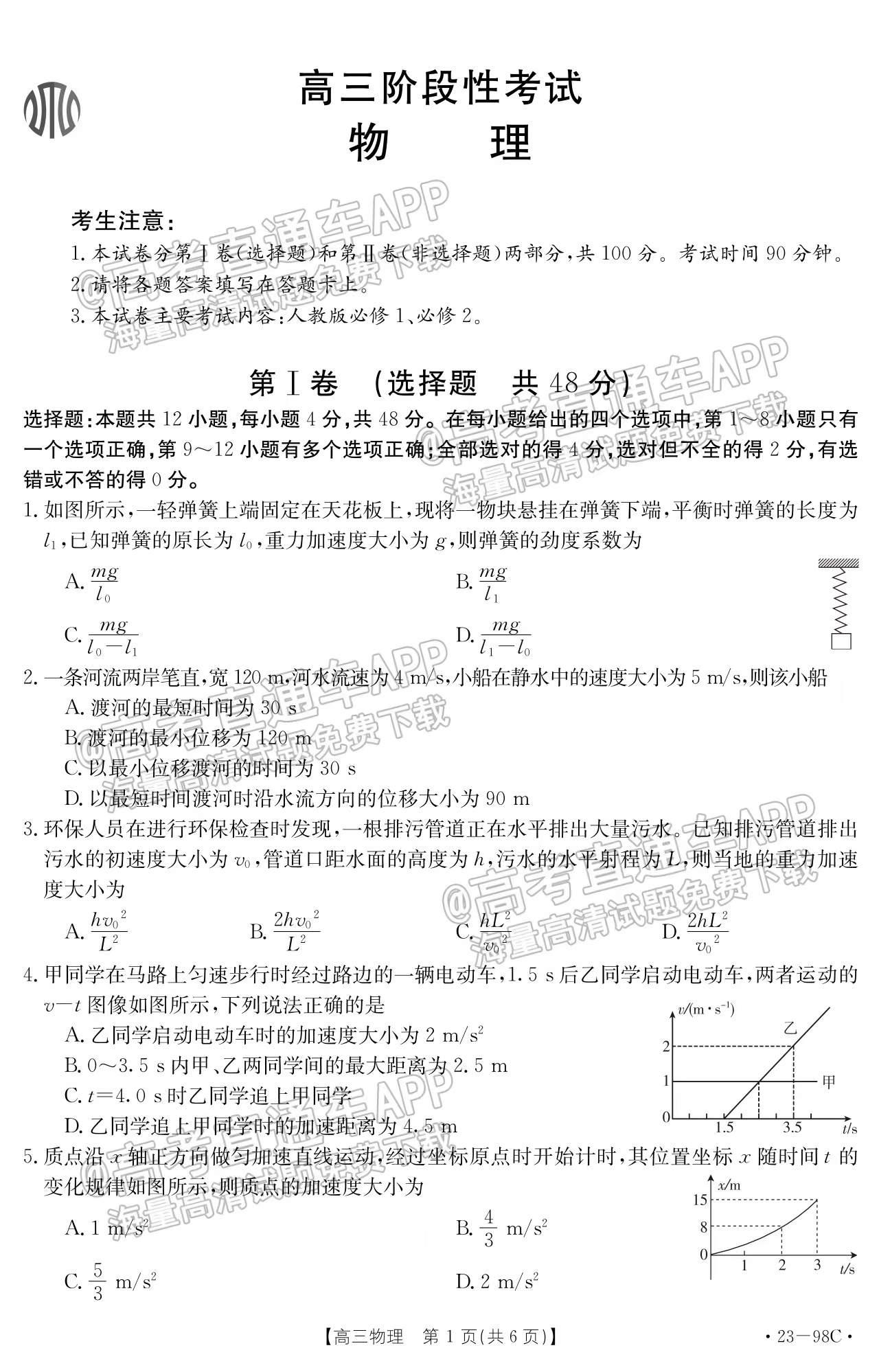 2023江西高三金太阳10月大联考(23-98c)将于2022年10月27日开考,考试结束后本文将更新2023江西高三10月大联考(23-98c)物理答案及试卷,下文为小编搜集整理的2023江西高三10月大联考(23-98c)物理试题及参考答案,供大家参考。