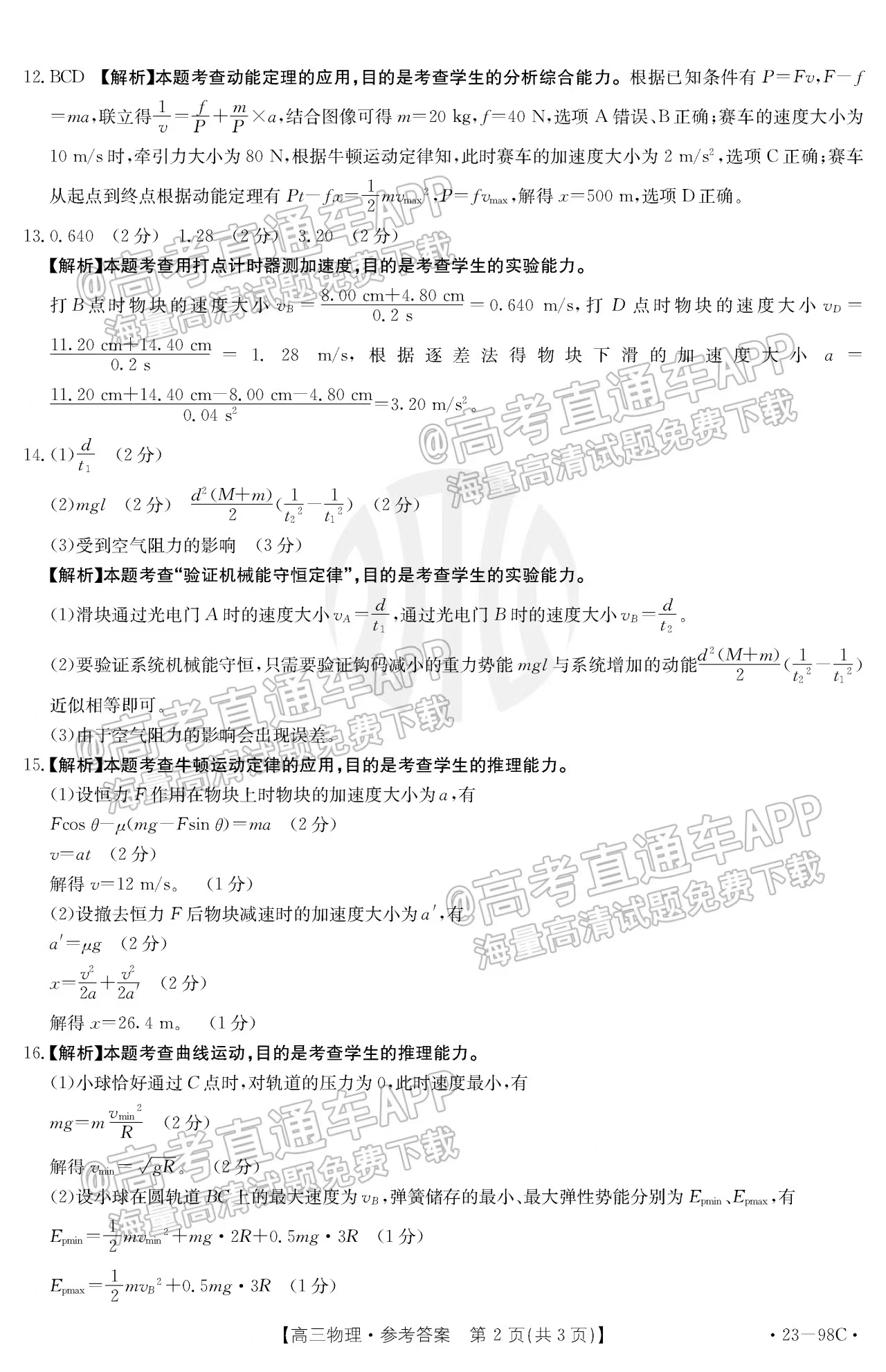 二、2023江西高三10月大联考(23-98c)物理参考答案
