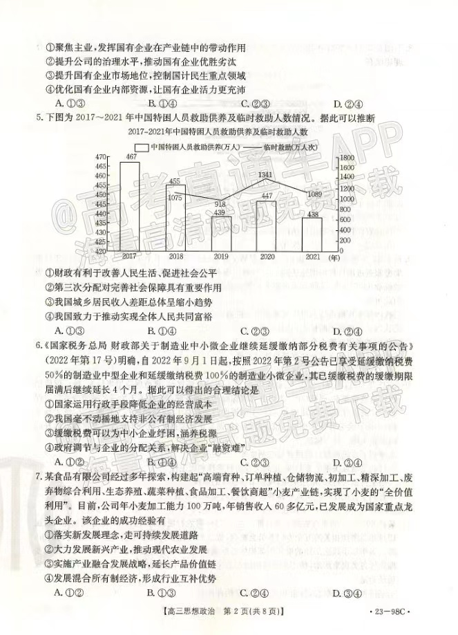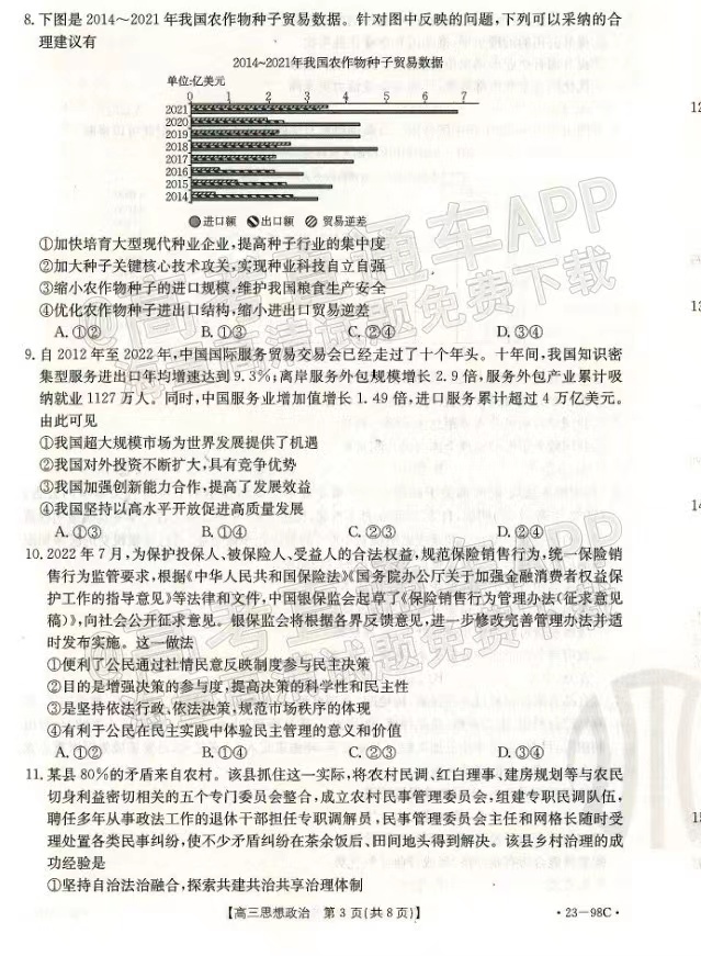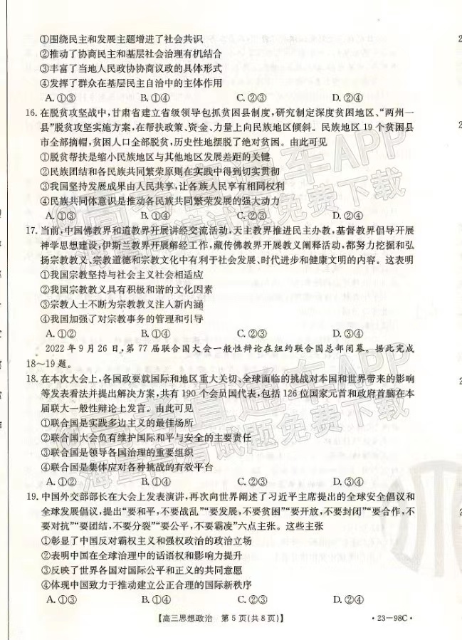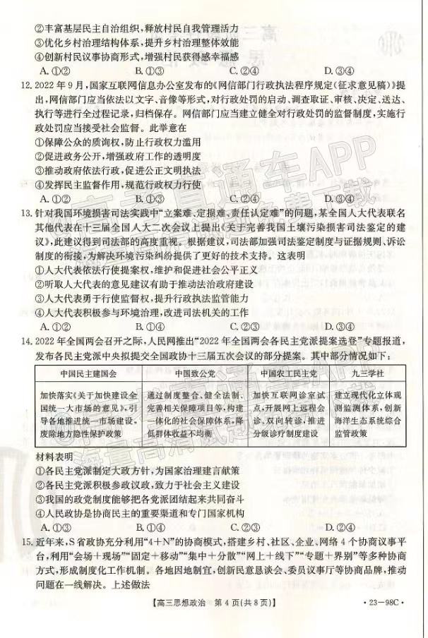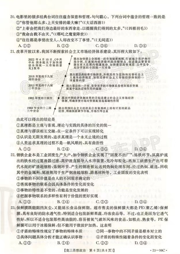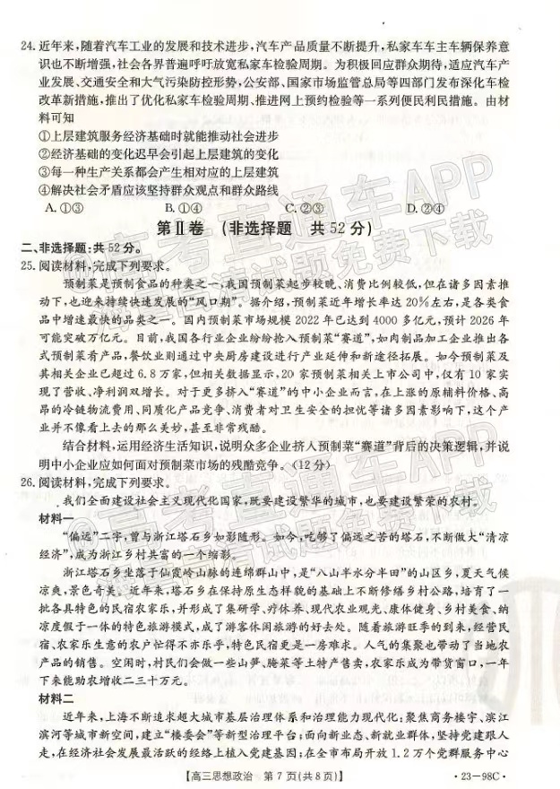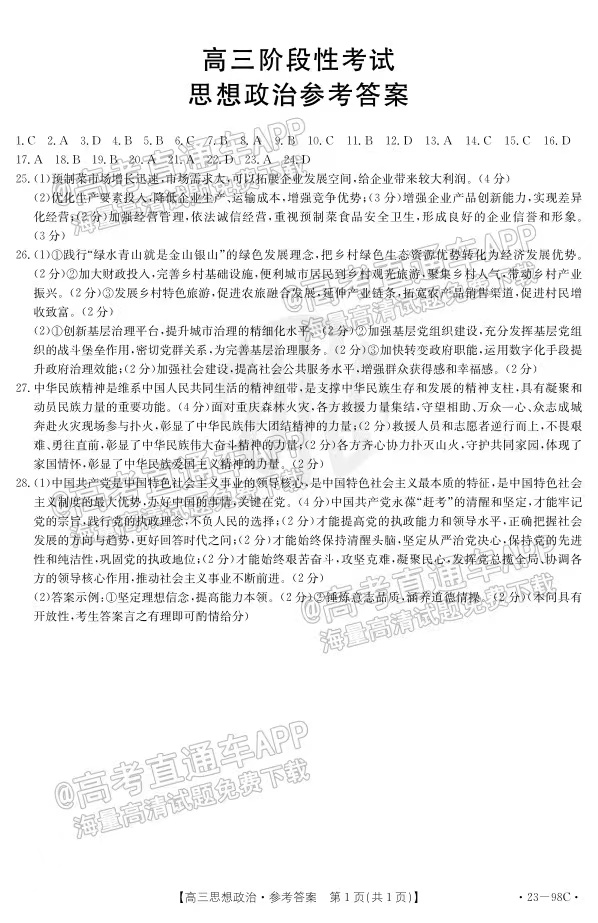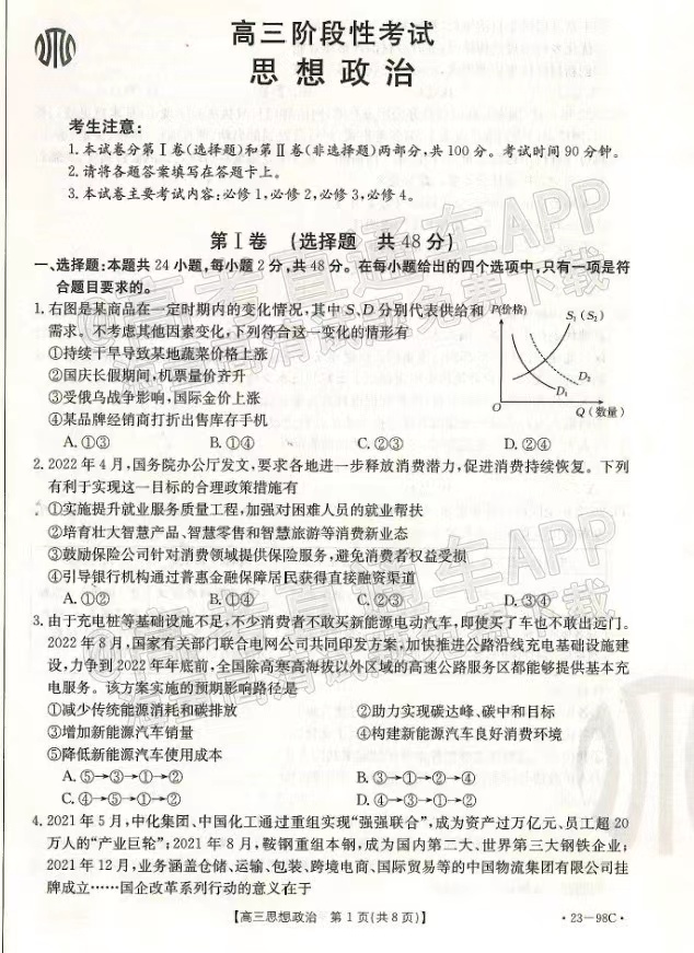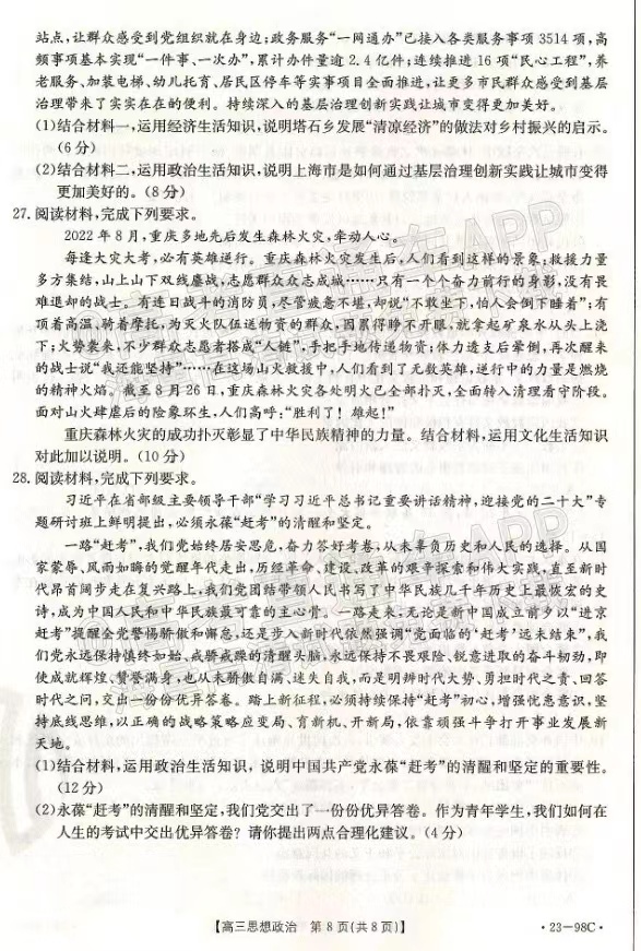2023江西高三10月大联考23-98c将于2022年10月27日开考,考试结束后本文将更新2023江西高三10月大联考23-98c政治答案及试卷,下文为小编搜集整理的2023江西高三10月大联考23-98c政治试题及参考答案,供大家参考。