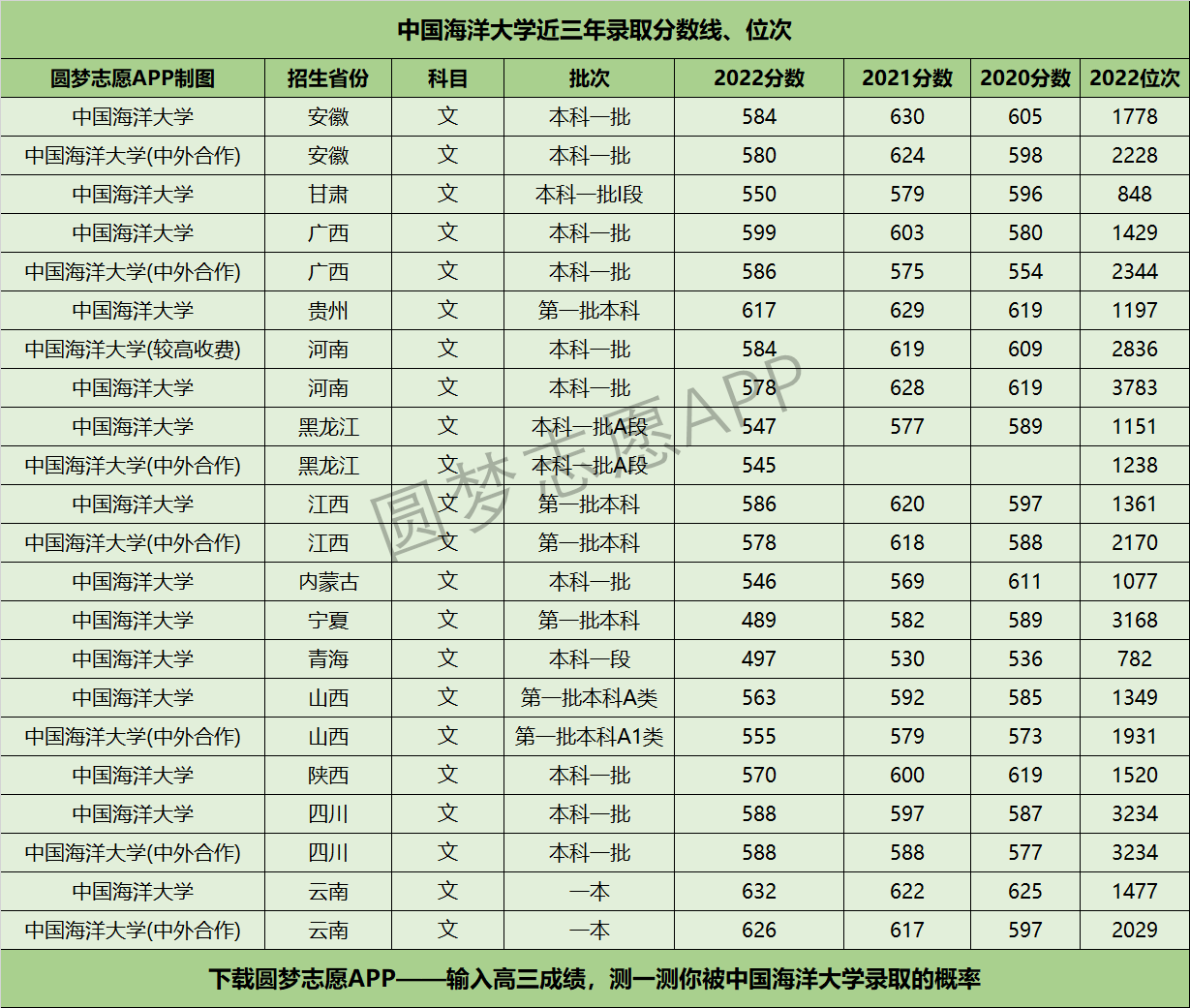 二、中国海洋大学近三年录取分数线及位次【文科版】