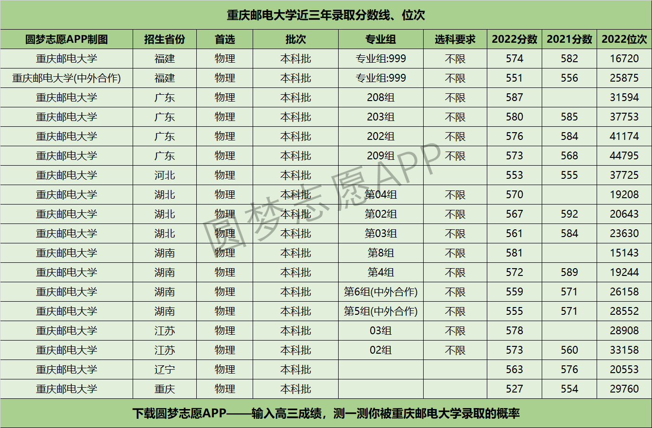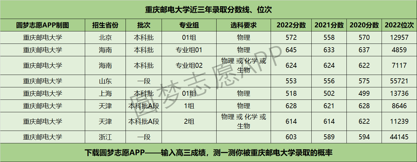 三、重庆邮电大学近年录取分数线及位次【首选物理版】
