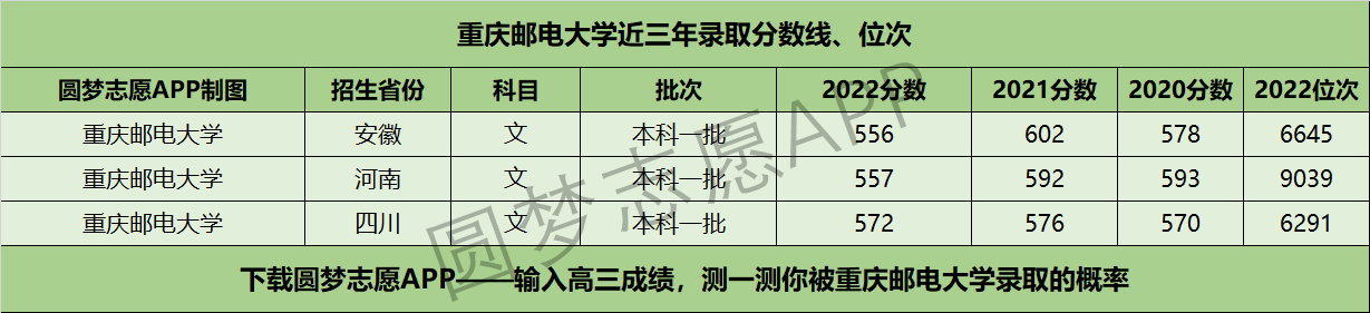二、重庆邮电大学近三年录取分数线及位次【文科版】