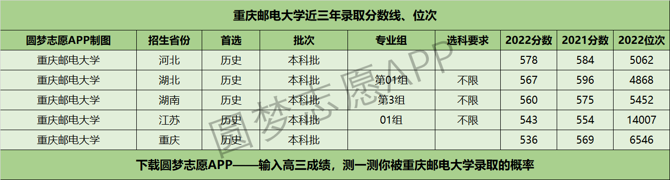 四、重庆邮电大学近年录取分数线及位次【首选历史版】