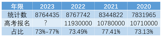 统计人数只是报名人数的73%,剩下的27%还包含了对口招生、高职单招(中职生的高职高考)、复读等人数。