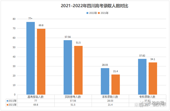 四川考生网上报名的时间2022年10月14日-20日,目前已经率先完成报名工作,2022年,四川省高考报名棕人数突破77万,比2021年上涨了7.2万人之多,涨幅达到10.32%,超过了一成,与全国报考人数涨幅大体相当!预计2023年也将继续上涨,按照10.32%的涨幅,明年报考人数有望突破80万,在84万左右!