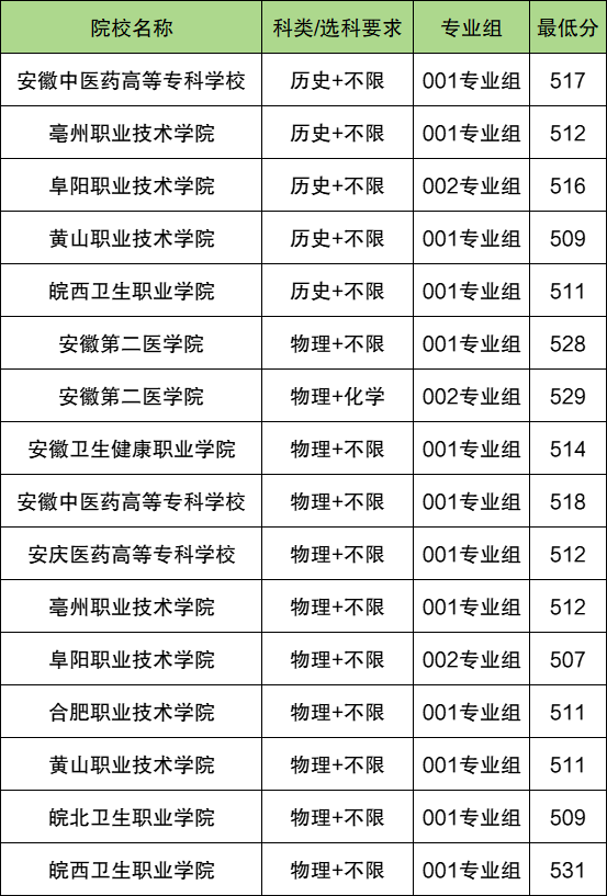 | 安徽中医药大学 | 物理+不限 | 001专业组 | 558 |