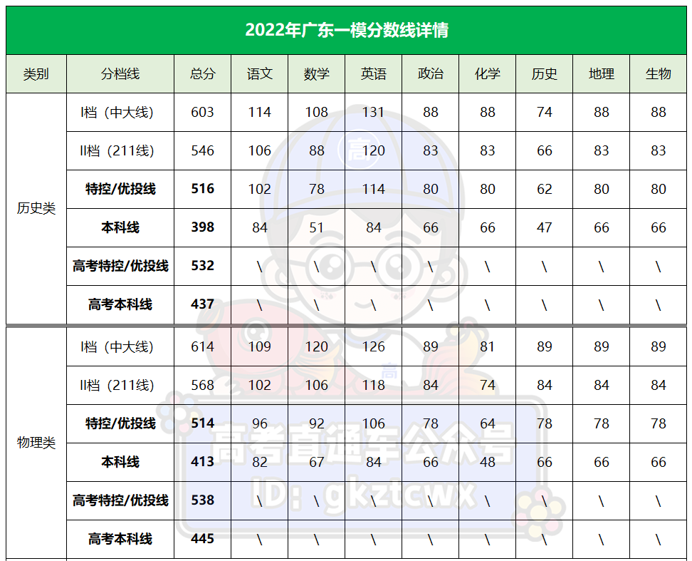 2022广东一模各科分数线划线情况(2023广东一模分数线公布后将第一时间替换):