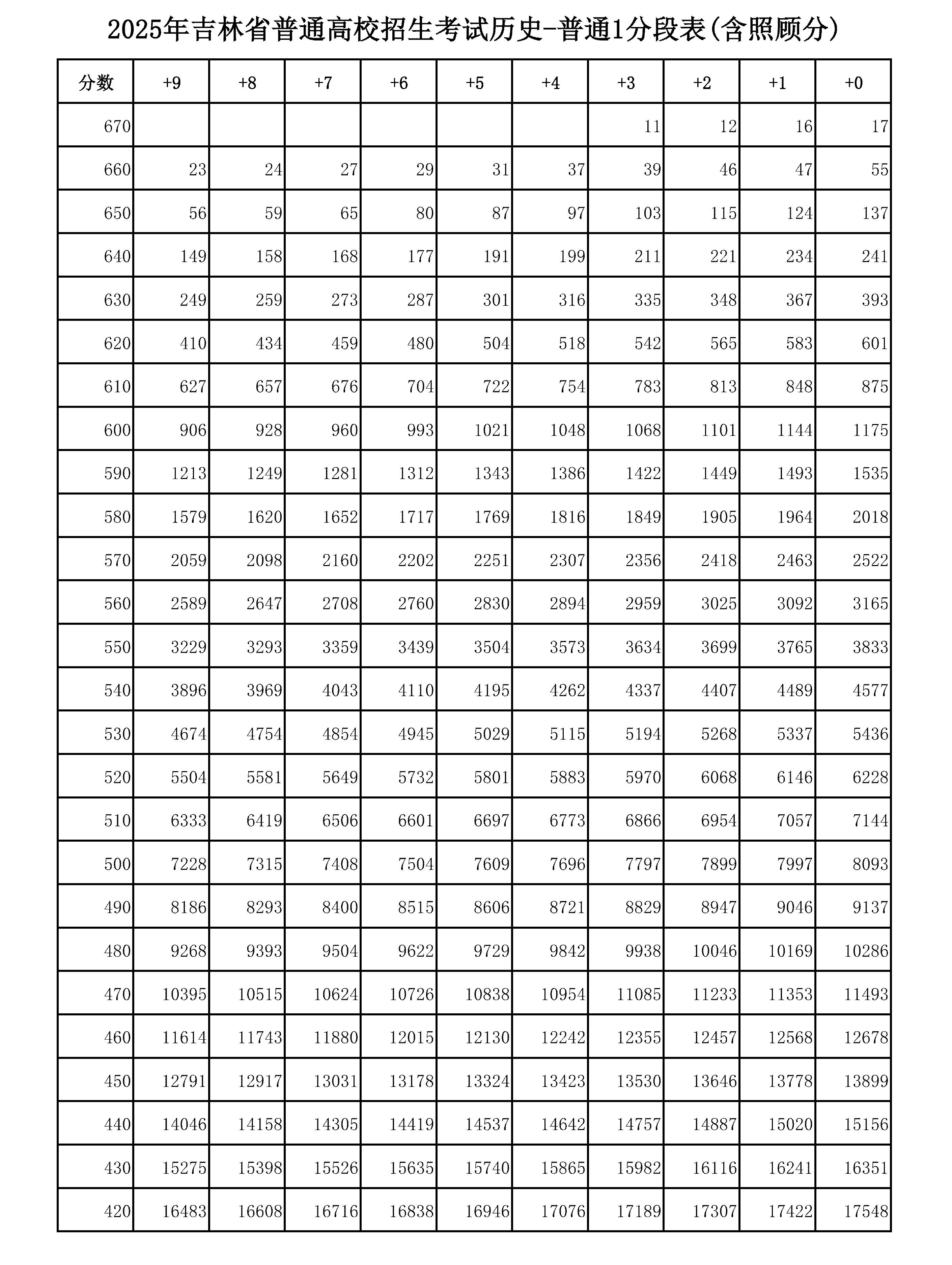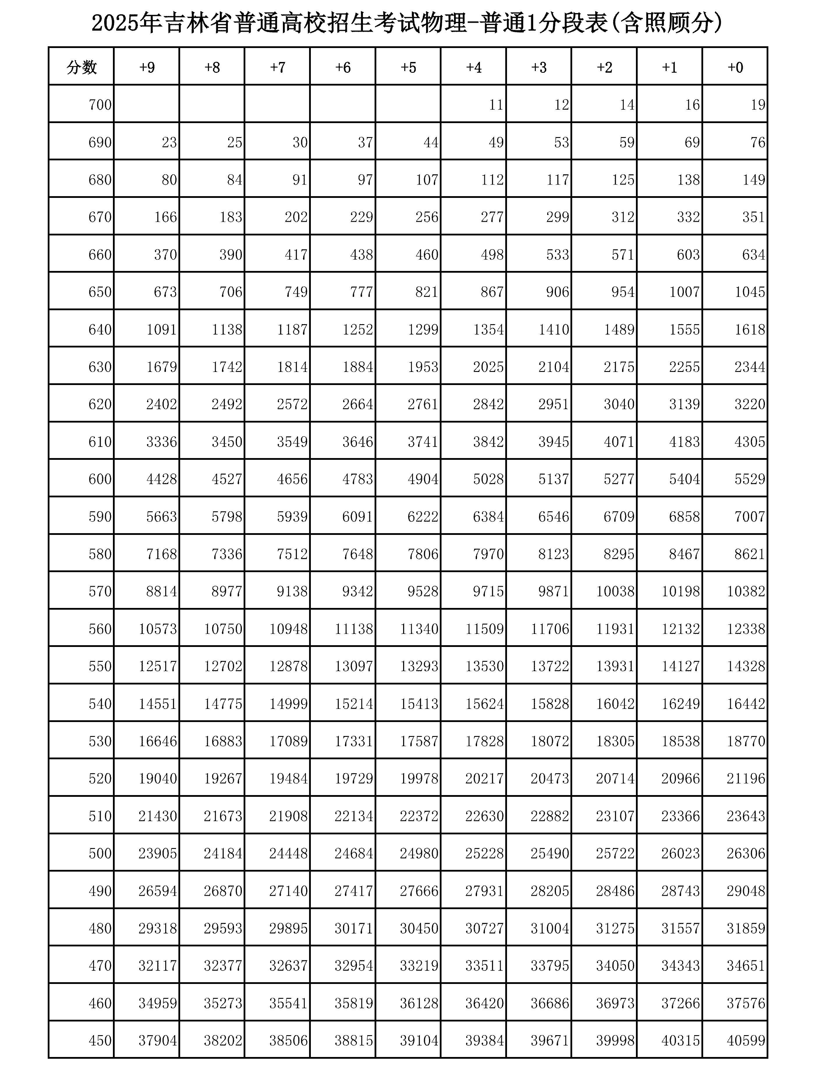 2025年吉林高考一分一段表已于6月25日公布。物理组704分及以上,历史组673分及以上,最低位次排名均为11。