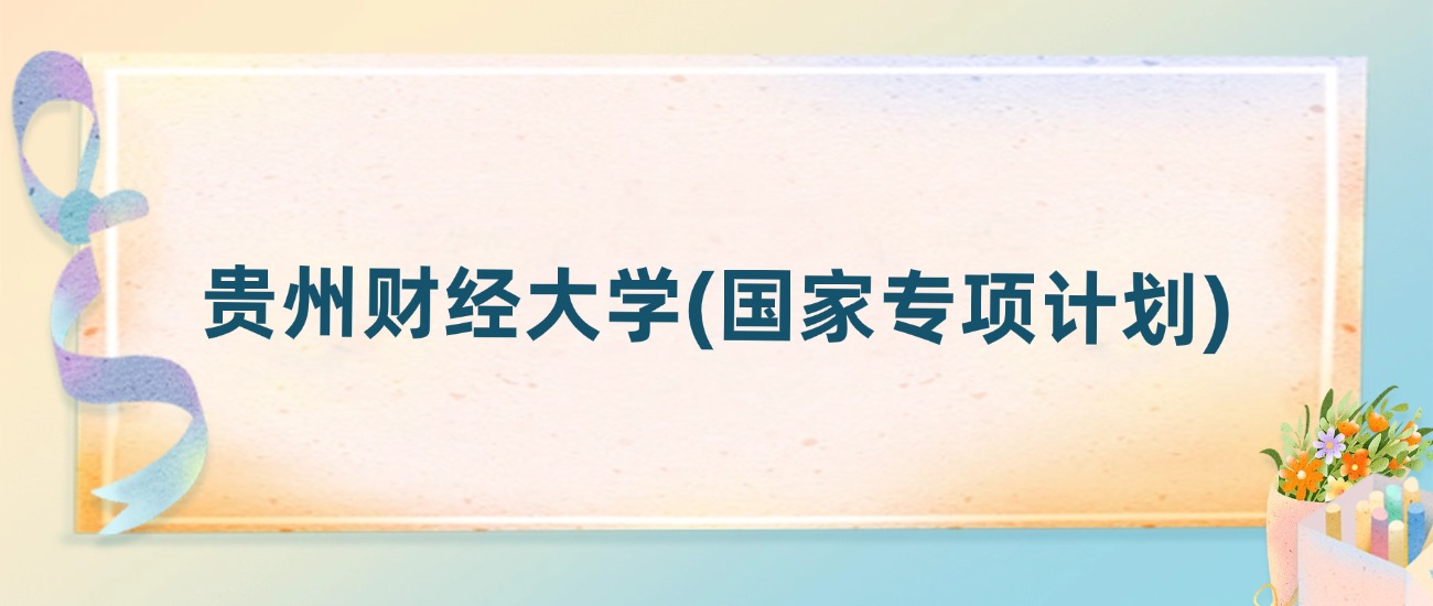 贵州财经大学(国家专项计划)物理组本科批招生专业有42个,其中招生人数最多的5个专业是:计算机科学与技术(国家专项)(20人)、行政管理(国家专项)(12人)、工商管理(国家专项)(10人)、人力资源管理(国家专项)(10人)、农林经济管理(国家专项)(10人)。