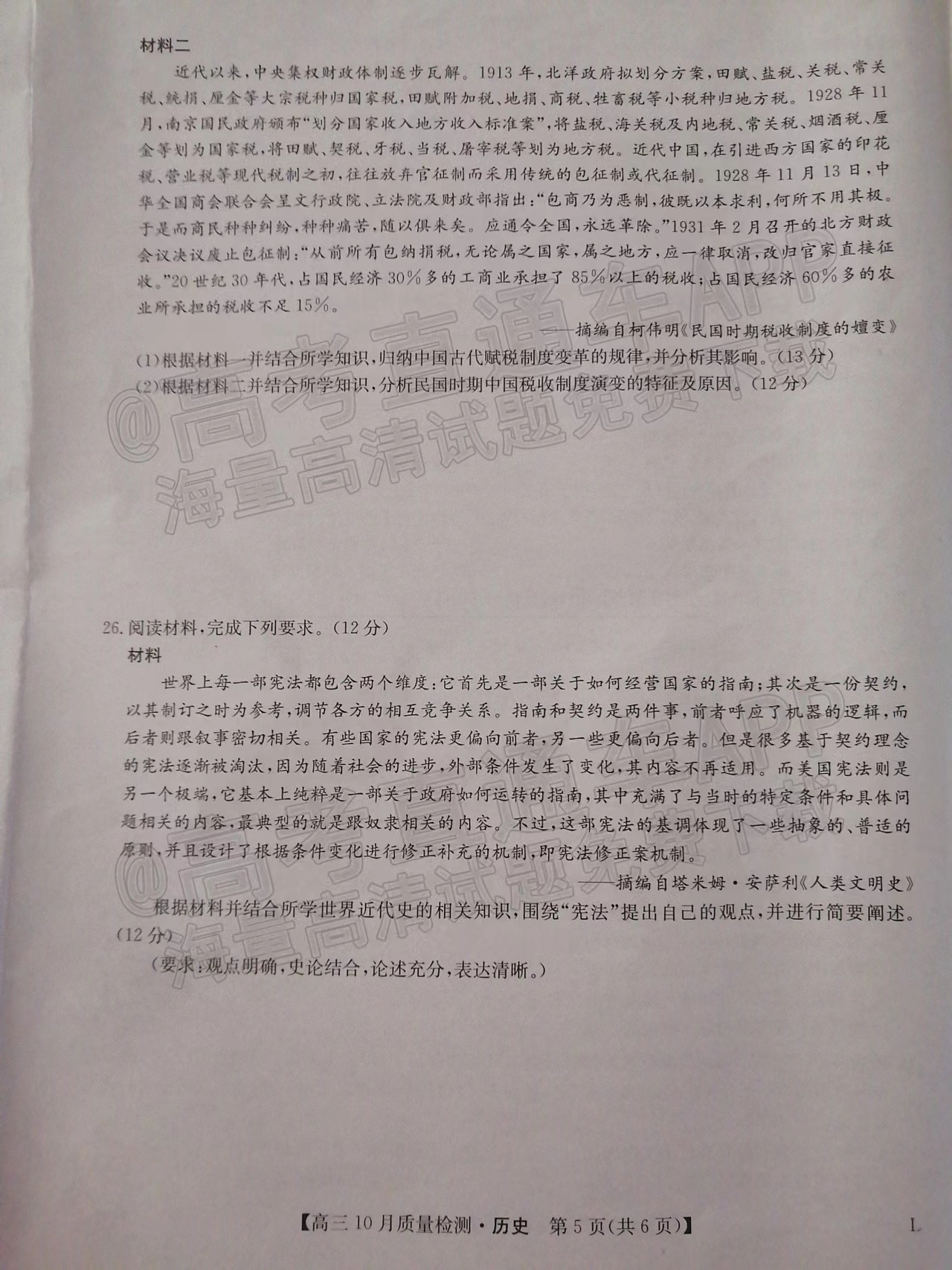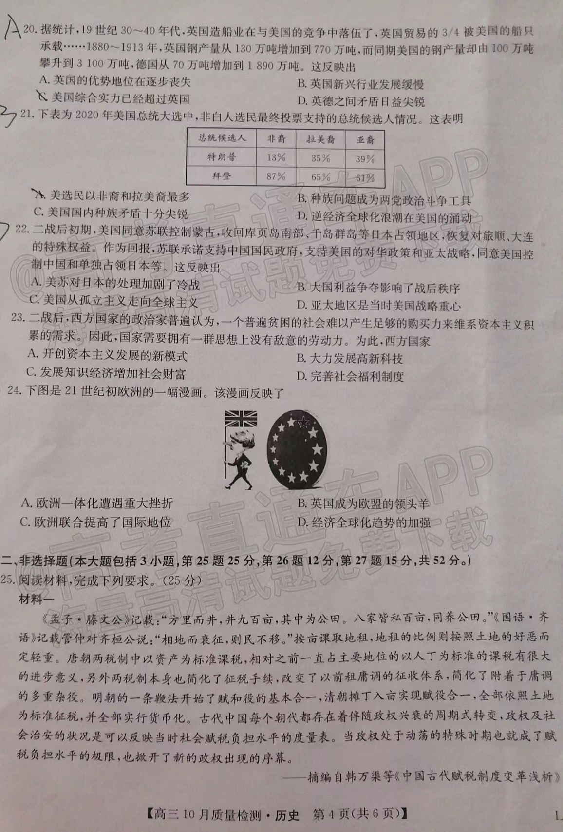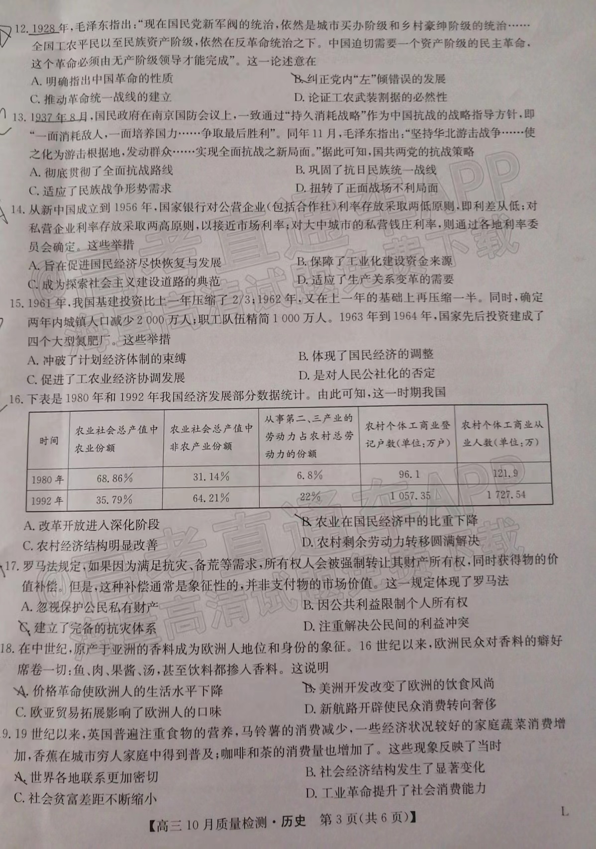 一.2023江西九师联盟高三10月联考历史试题及答案解析