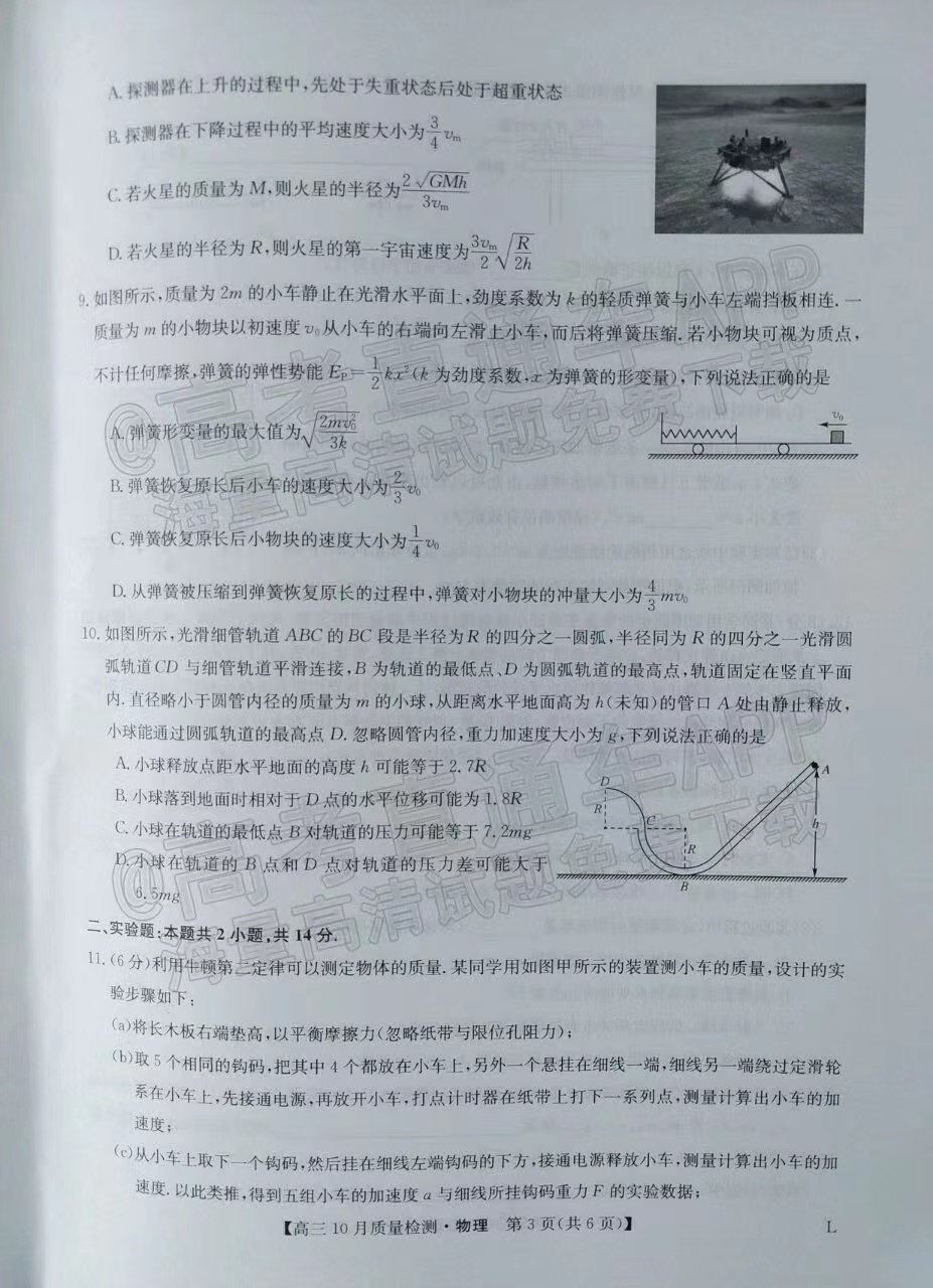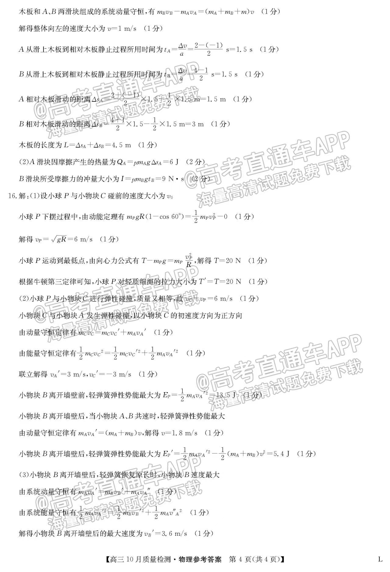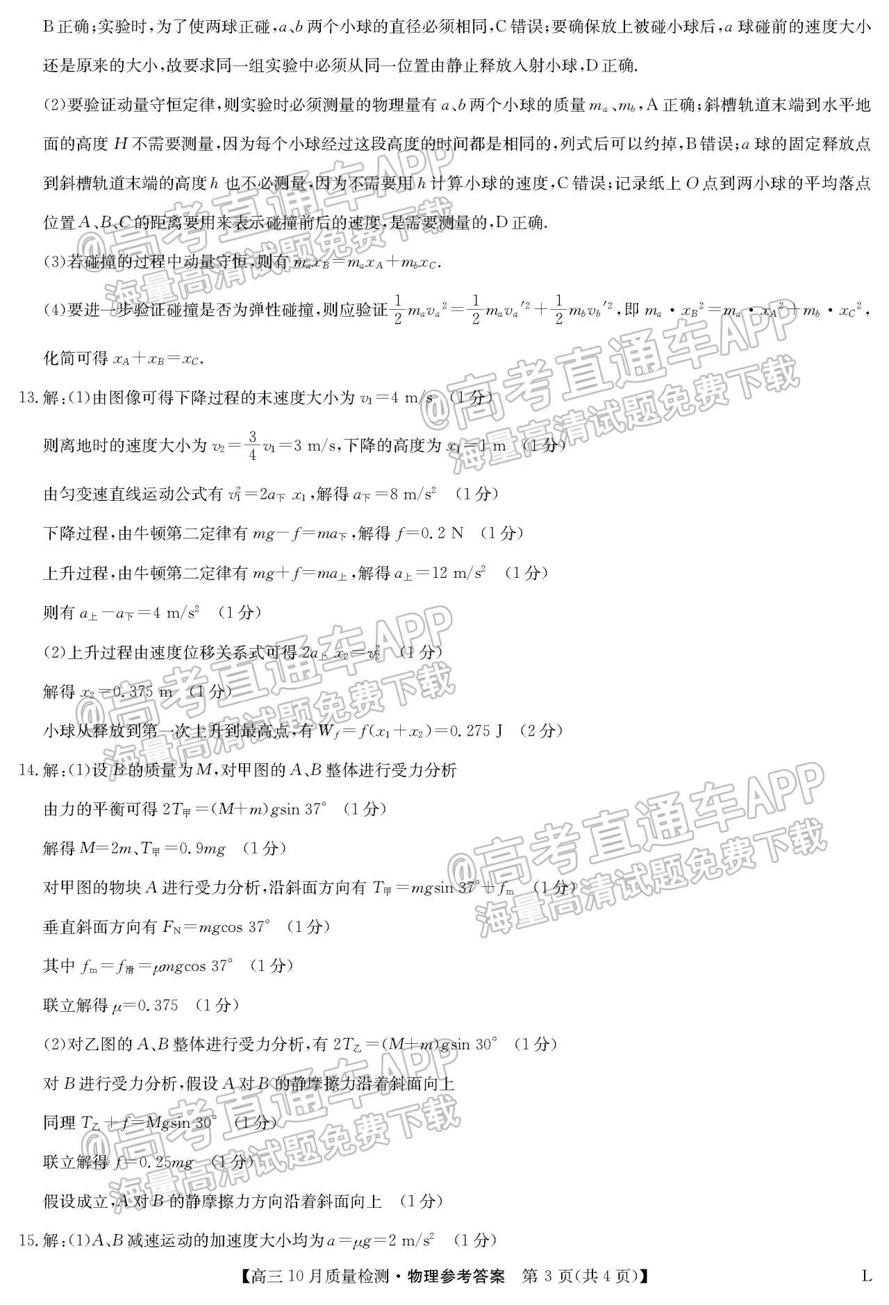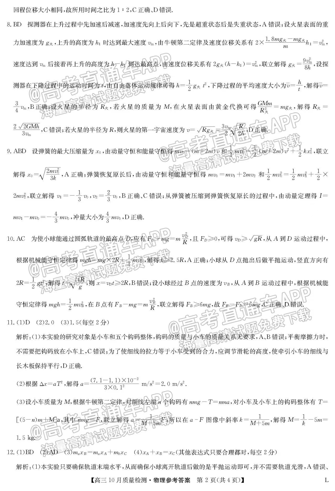 一.2023江西九师联盟高三10月联考物理试题及答案解析