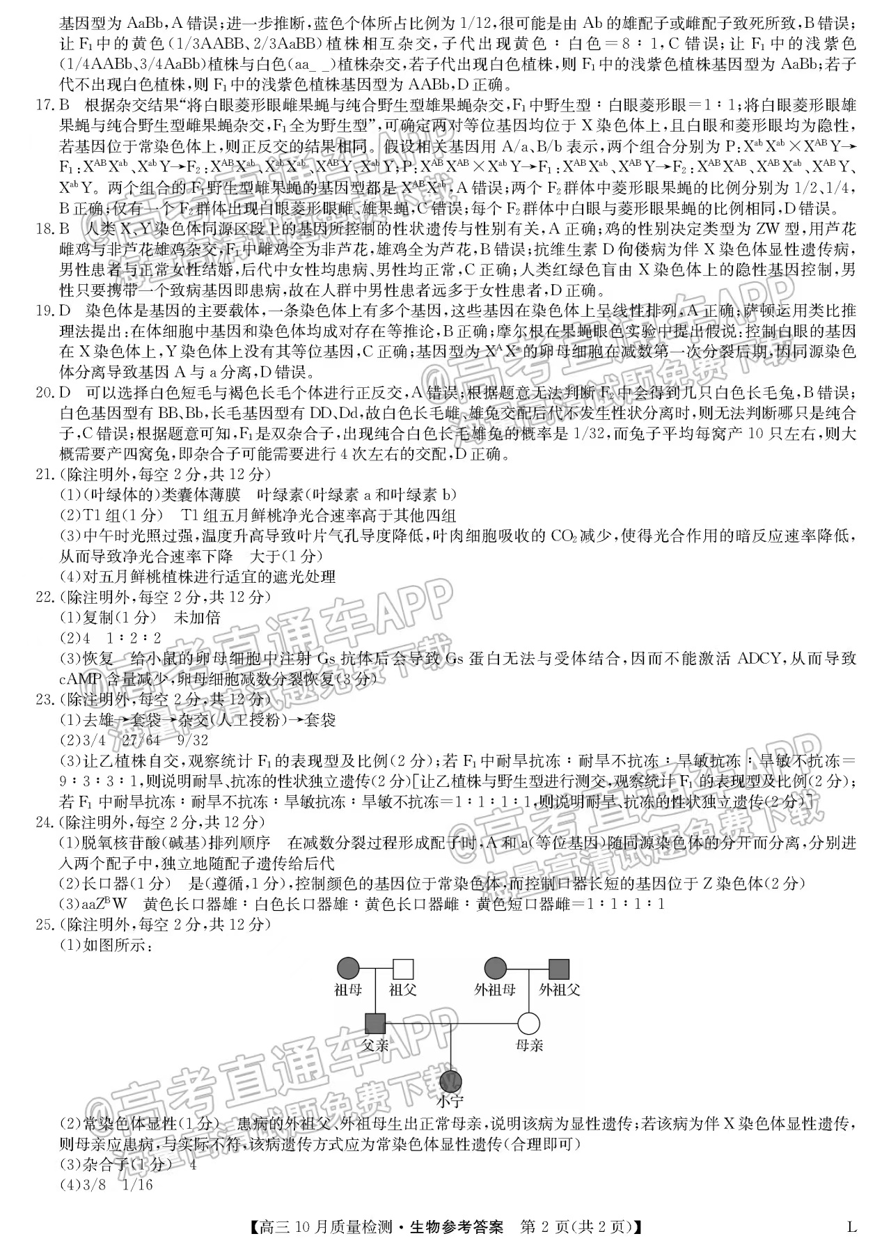 一.2023江西九师联盟高三10月联考生物试题及答案解析