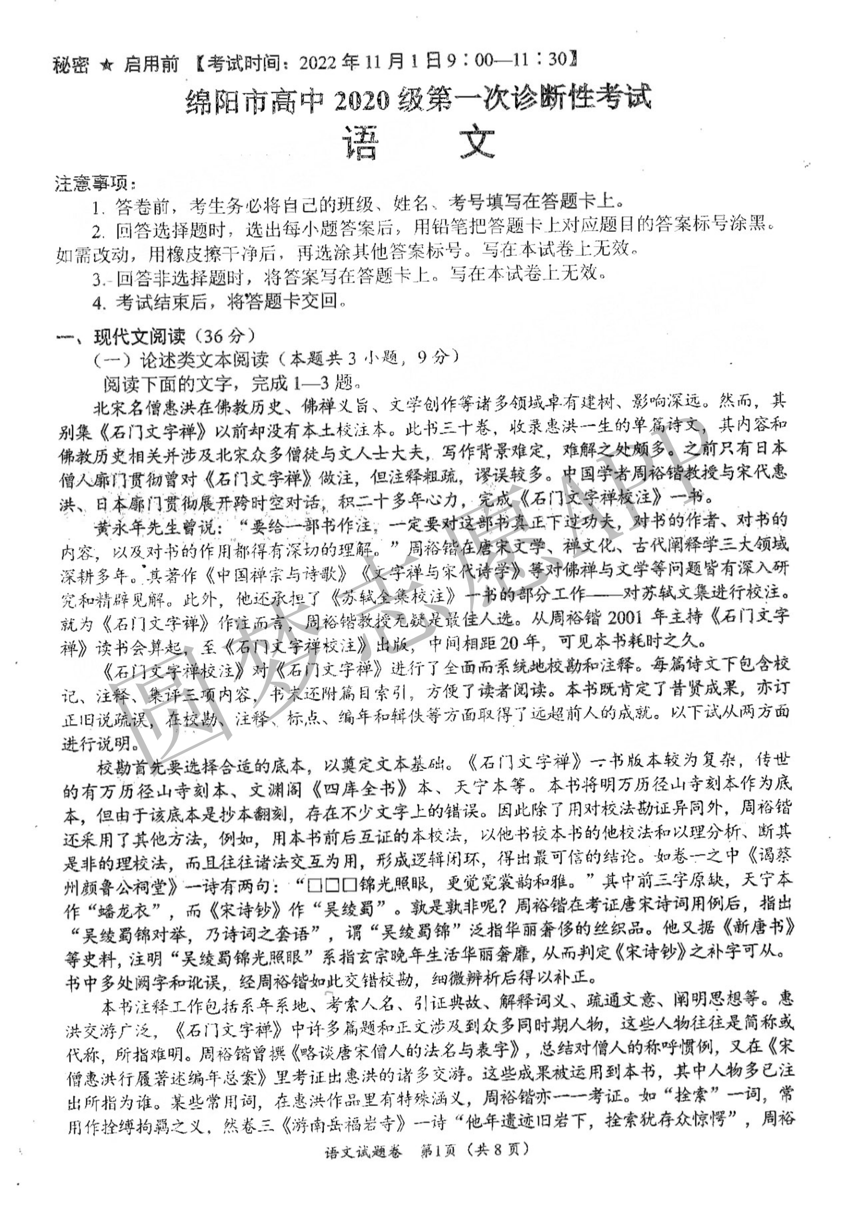 2023绵阳一诊考试将于2022年11月1日开考,考试结束后本文将更新绵阳市2023届高三第一次诊断性考试语文答案及试卷,下文为小编搜集整理的2023绵阳一诊语文综合试题及参考答案,供大家参考。