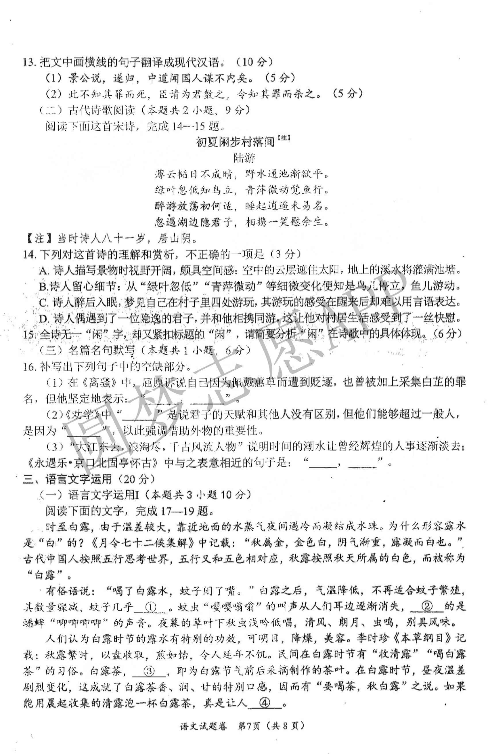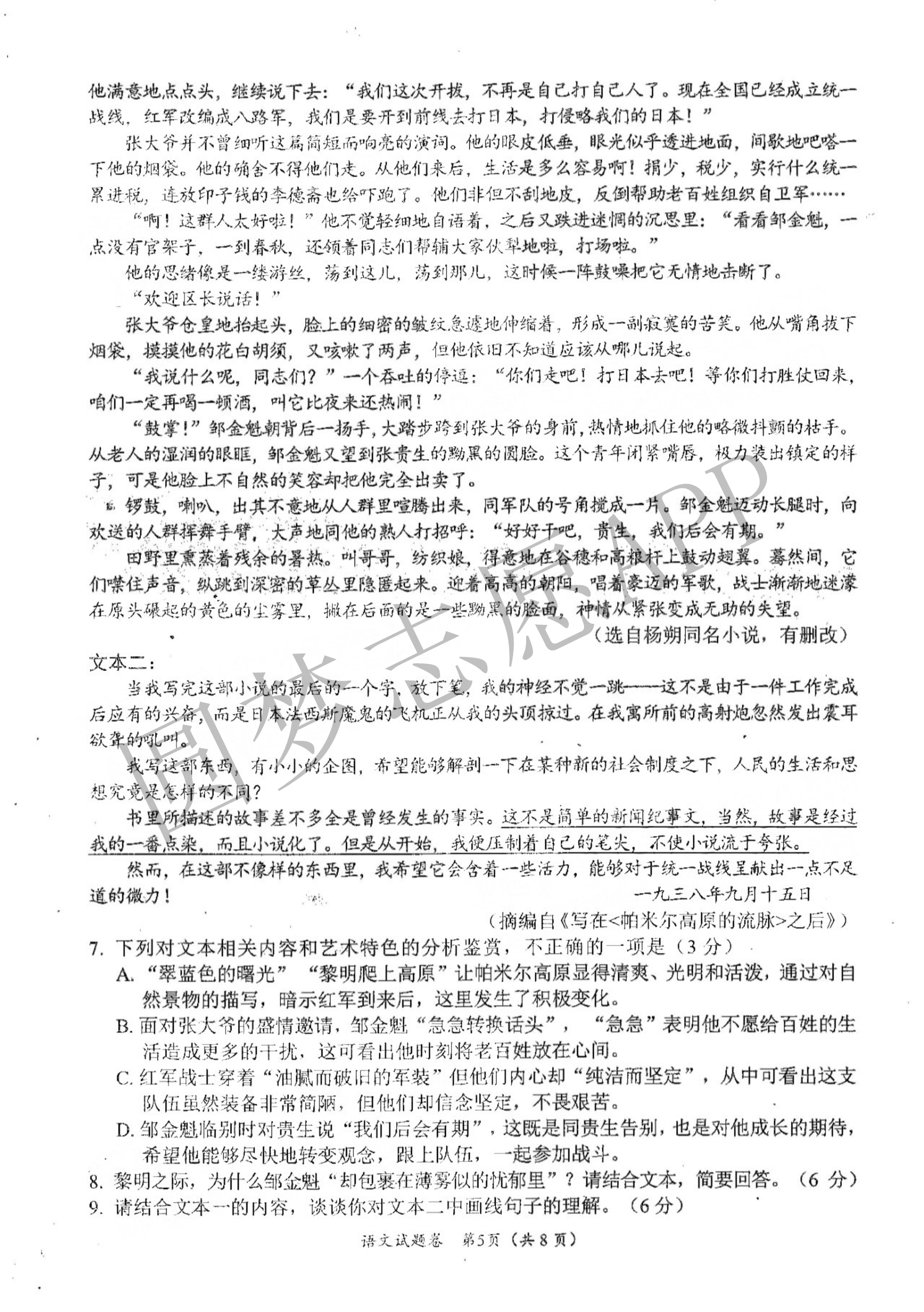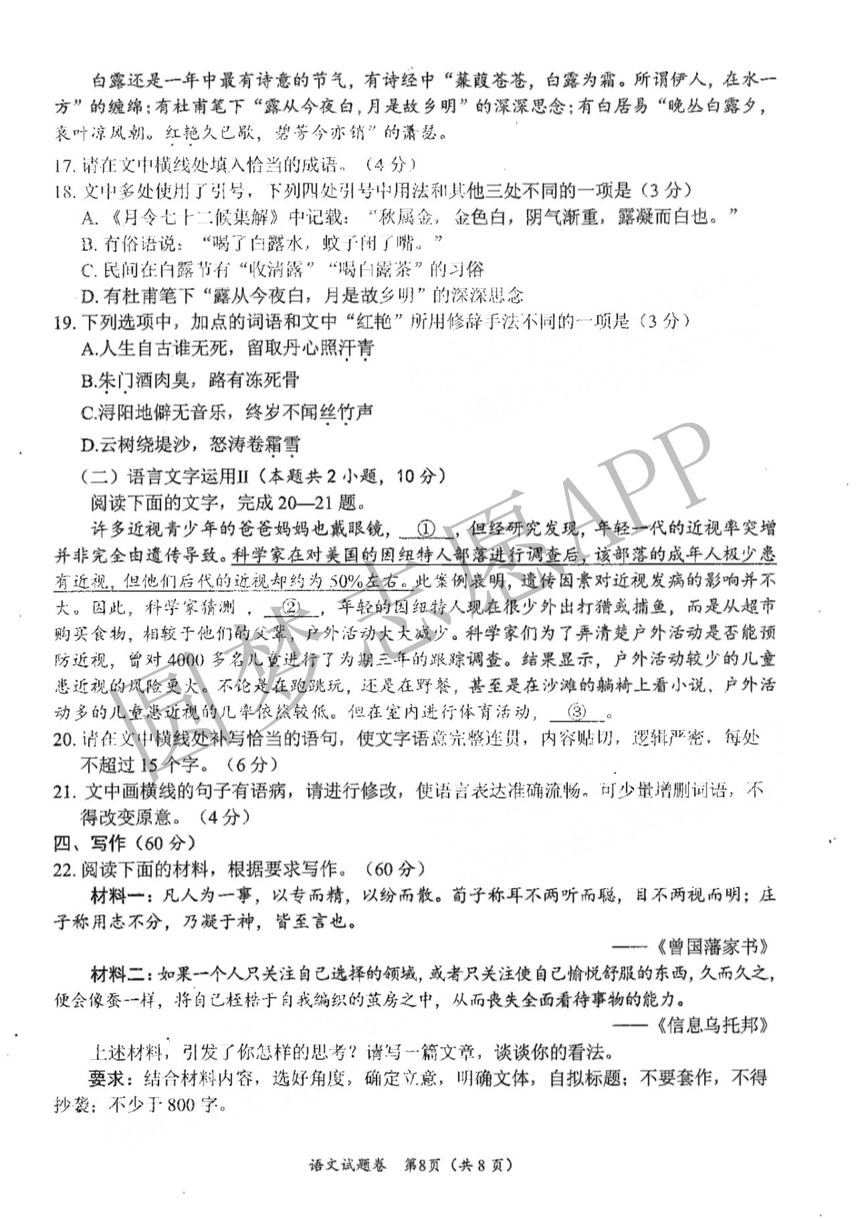 二、2023绵阳一诊语文答案解析