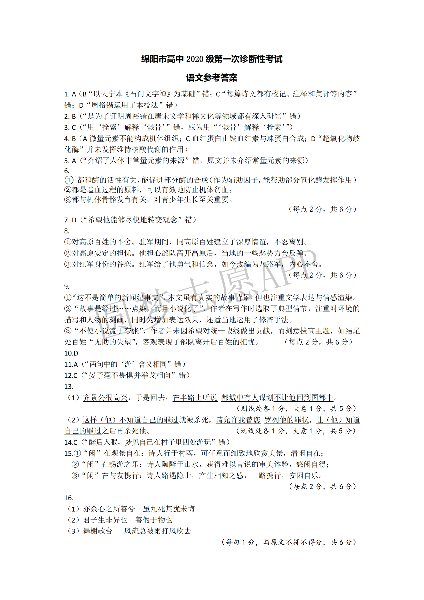 本次考试其他科目(数学、英语、文理综)一键查阅快捷入口:2023绵阳一诊各科试卷试题及参考答案汇总(点击查看)
