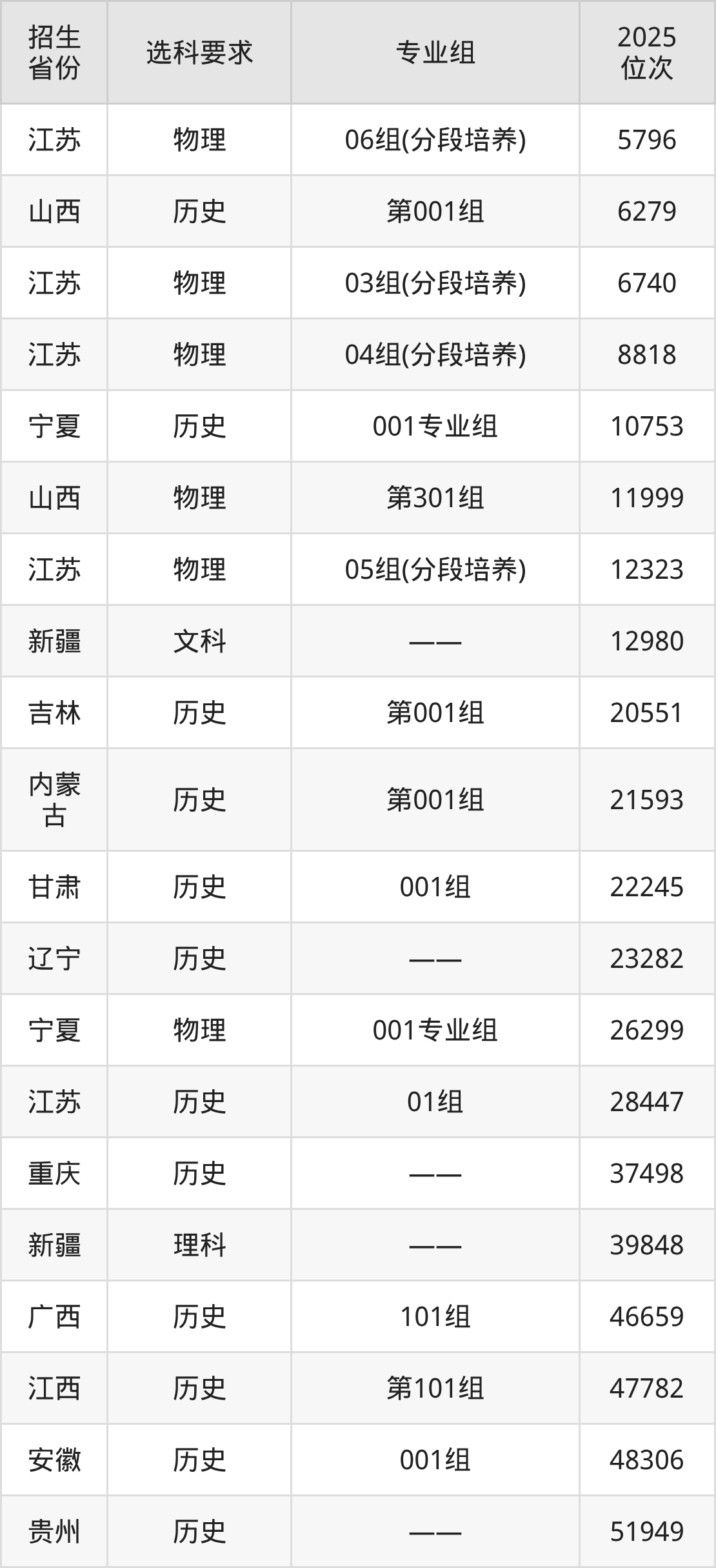 江苏农牧科技职业学院2025年在全国各省的位次差异较大,最高位次是5796位(江苏物理类)、最低位次是370929位(山东)。各省具体位次请看下图: