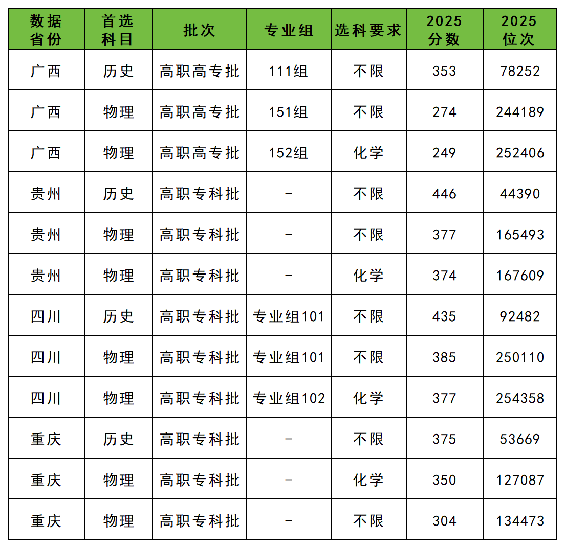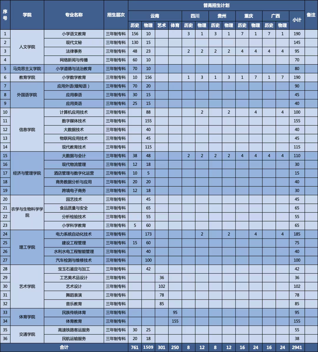 招生地区:面向云南、四川、贵州、重庆、广西招生。