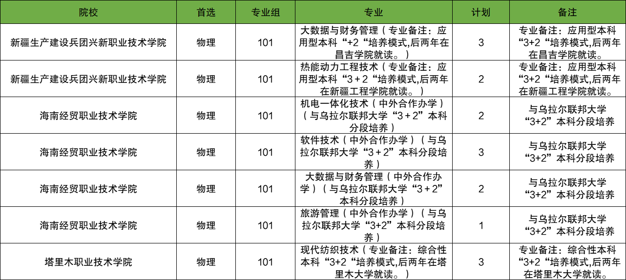 高职院校:新疆生产建设兵团兴新职业技术学院、海南经贸职业技术学院、塔里木职业技术学院。