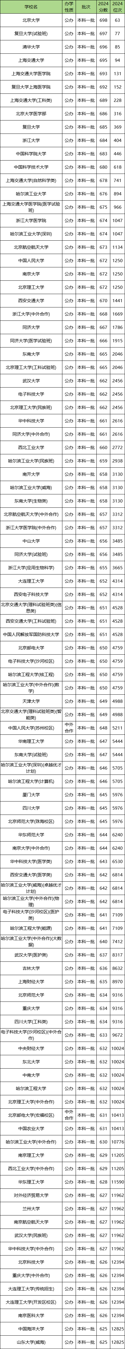 (1)北京大学,698分,63名;