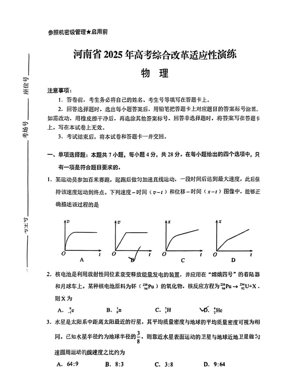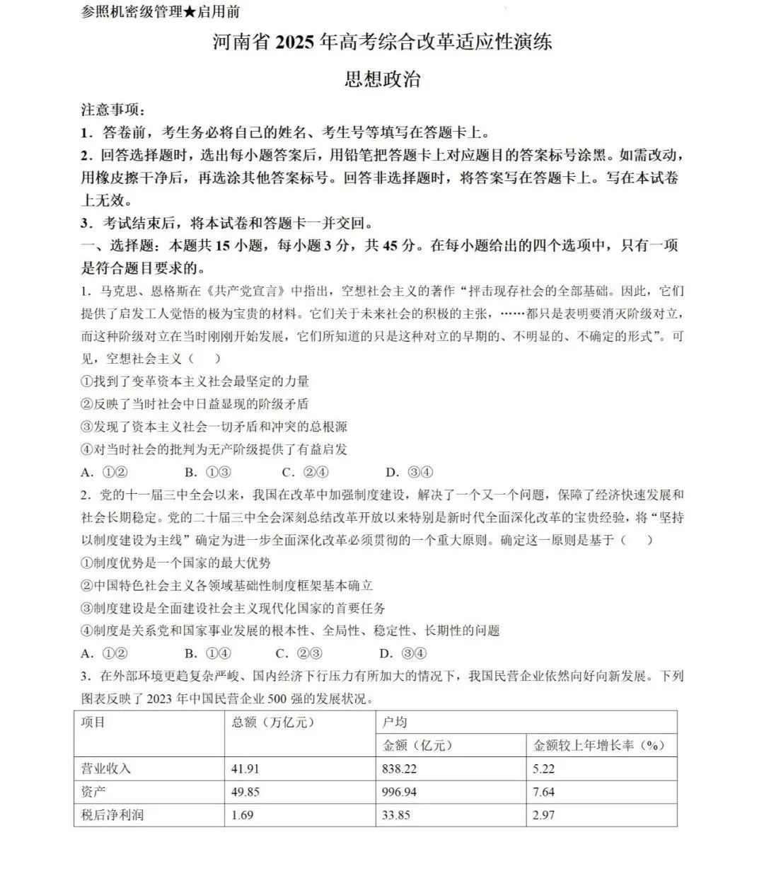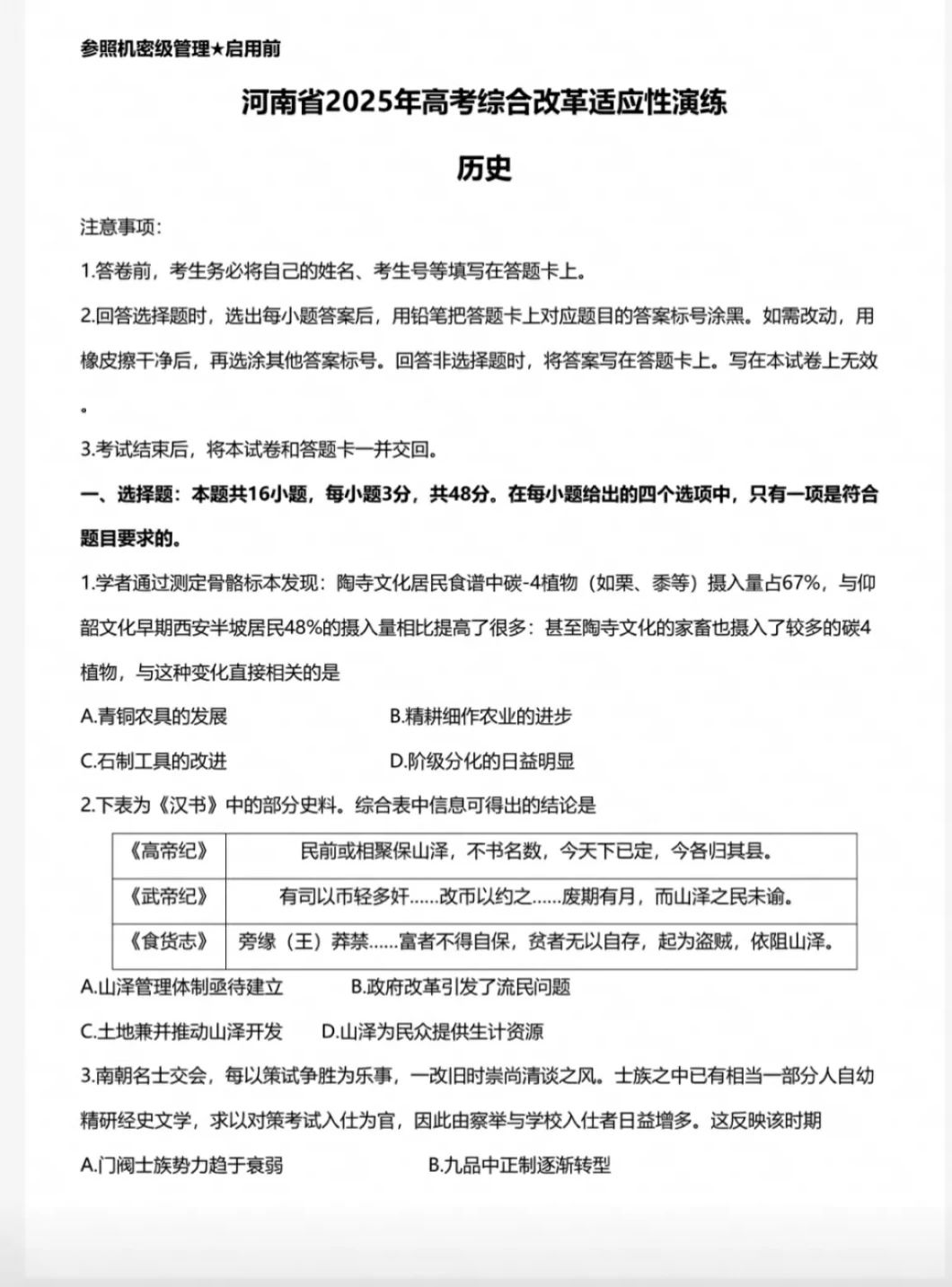 2025河南新高考适应性考试其实就是在1月3日统一进行的八省联考,本文就只整理河南新高考适应性考试9个各科目的答案及试卷,供河南考生参考。