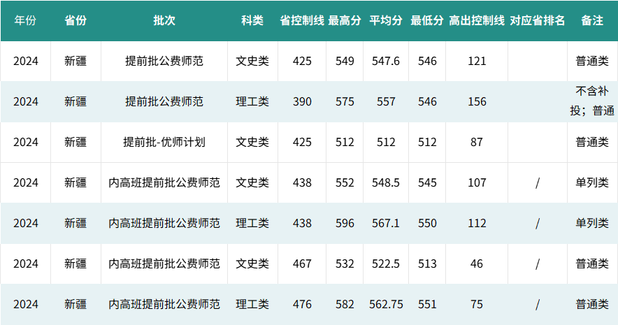 2024年新疆公费师范生院校录取分数线最低分:华中师范大学512分。