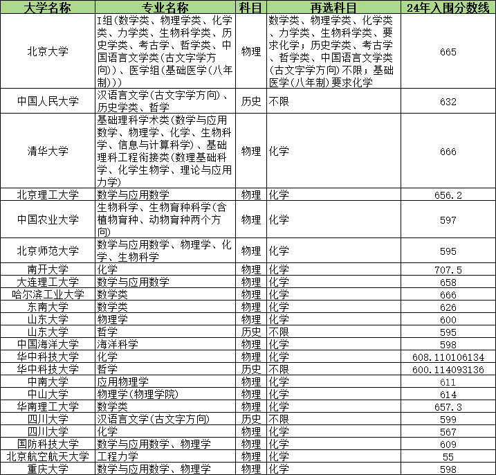 面向江西省实行强基计划招生的所有大学名单一览表: