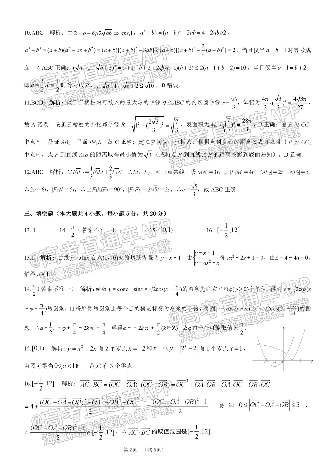 二、2023湖南三湘名校联盟高三第一次联考数学答案