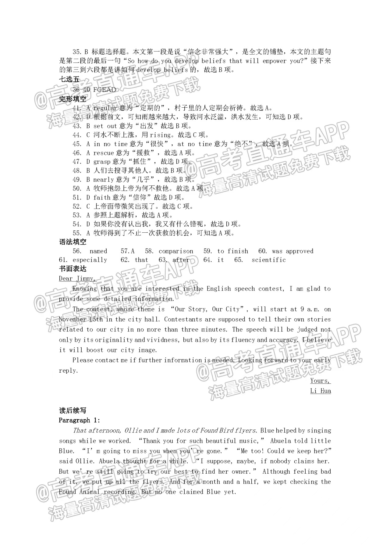 二、2023湖南三湘名校联盟高三第一次联考英语答案