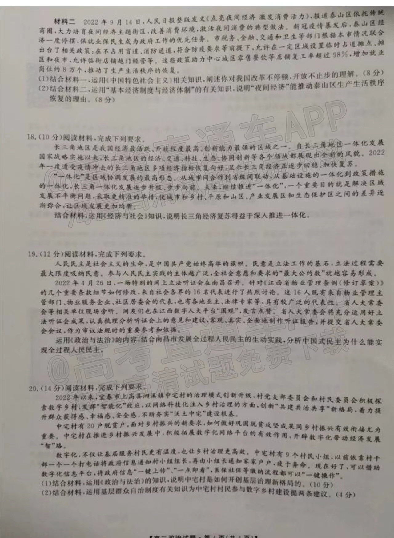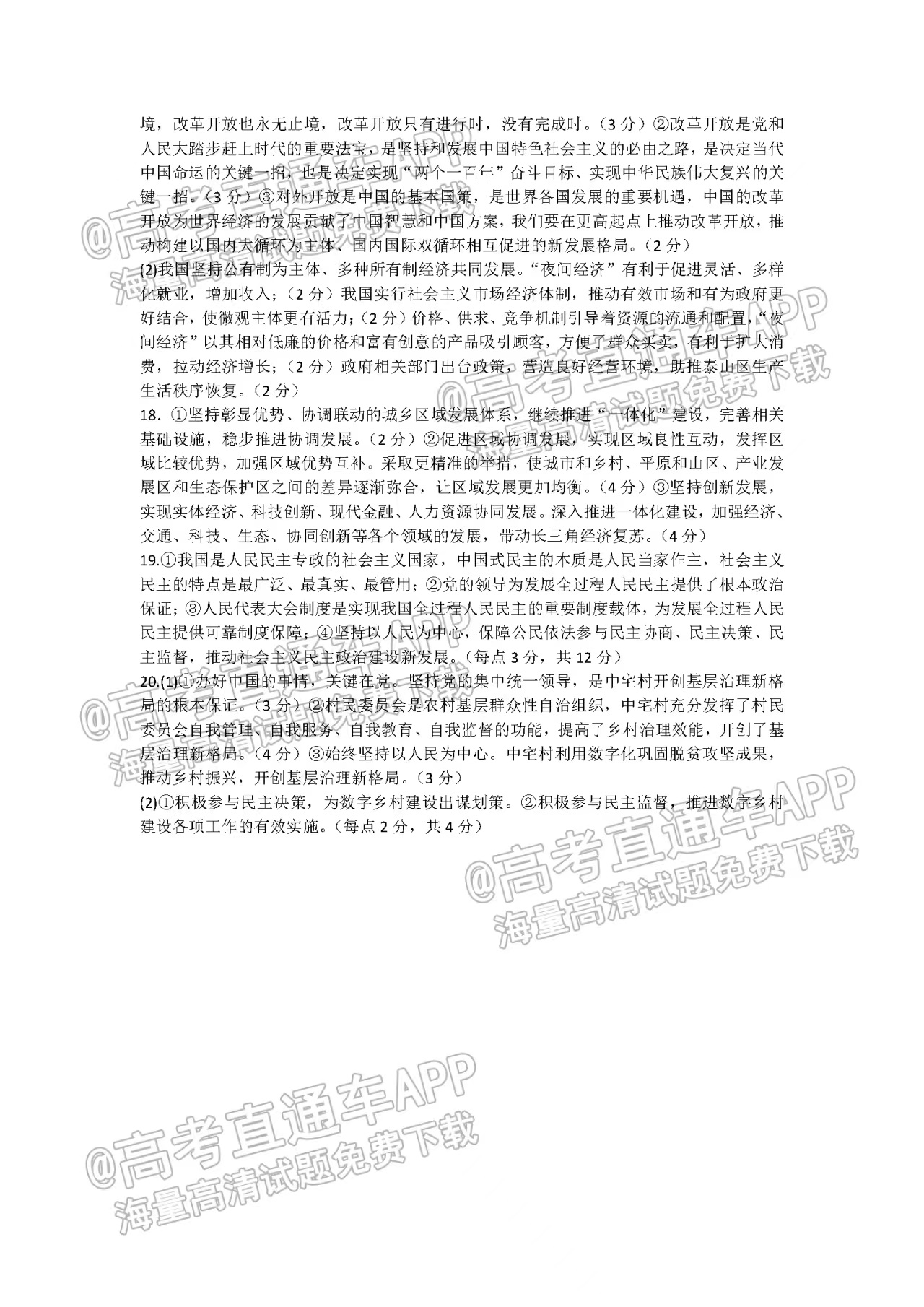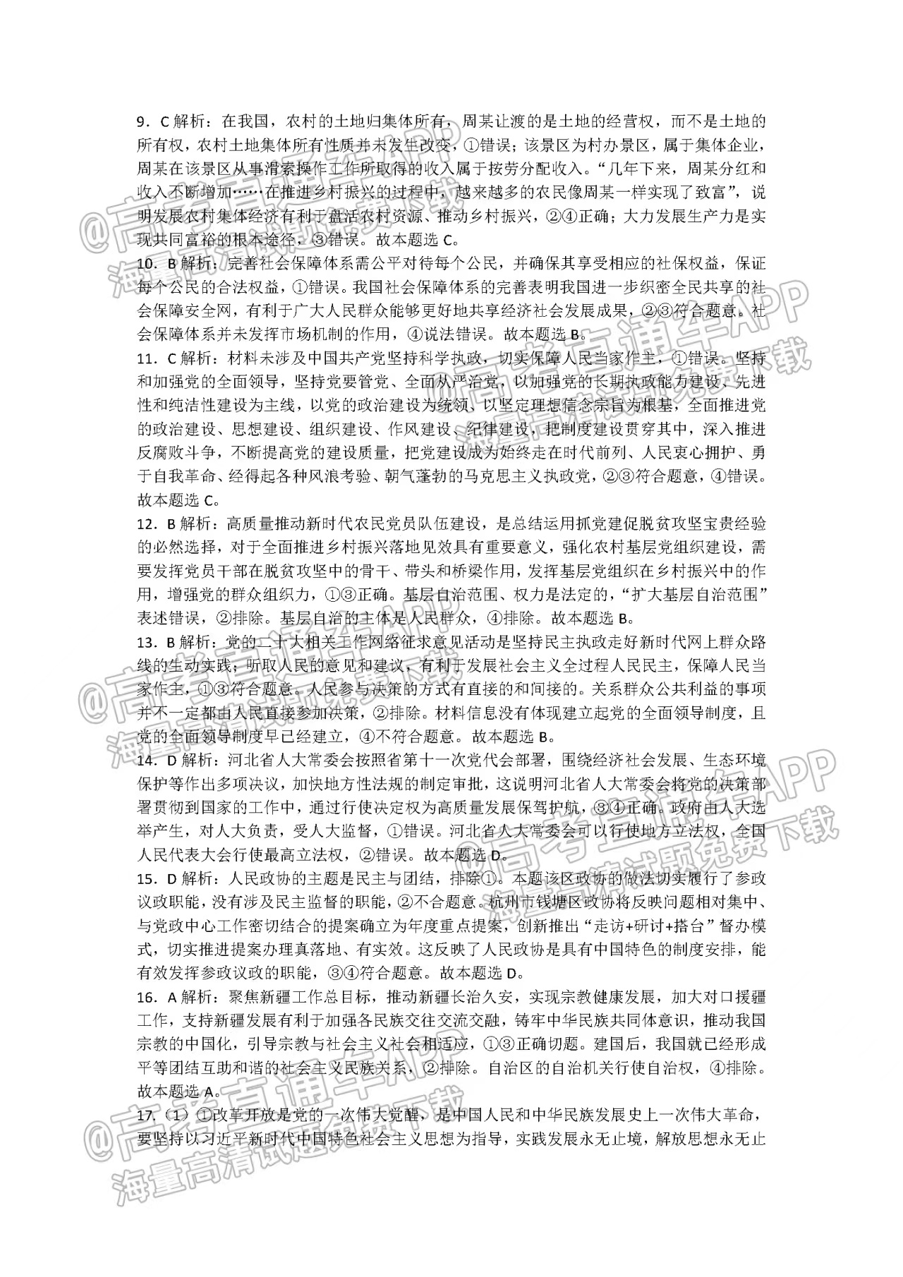 二、2023湖南三湘名校联盟高三第一次联考政治答案