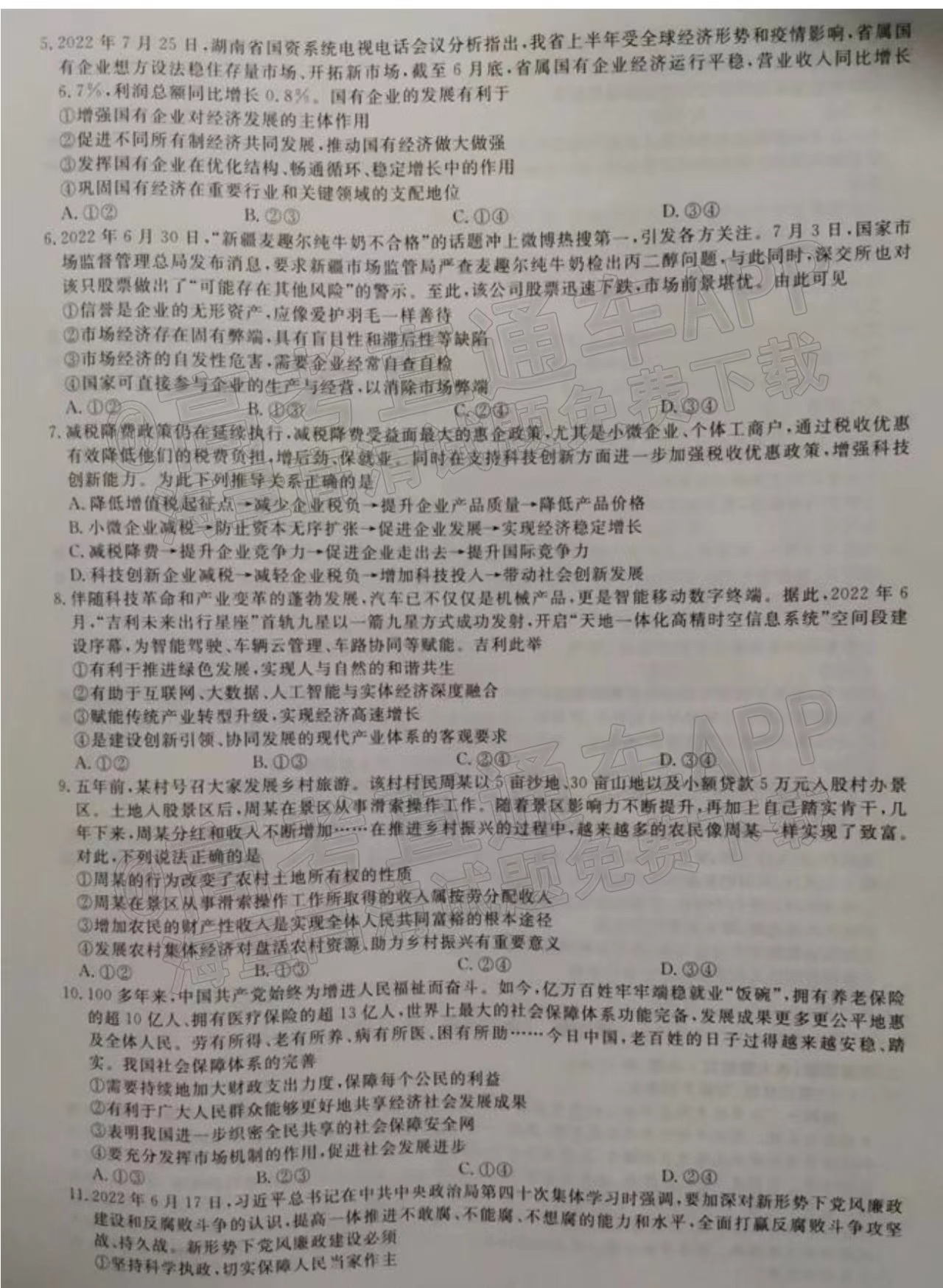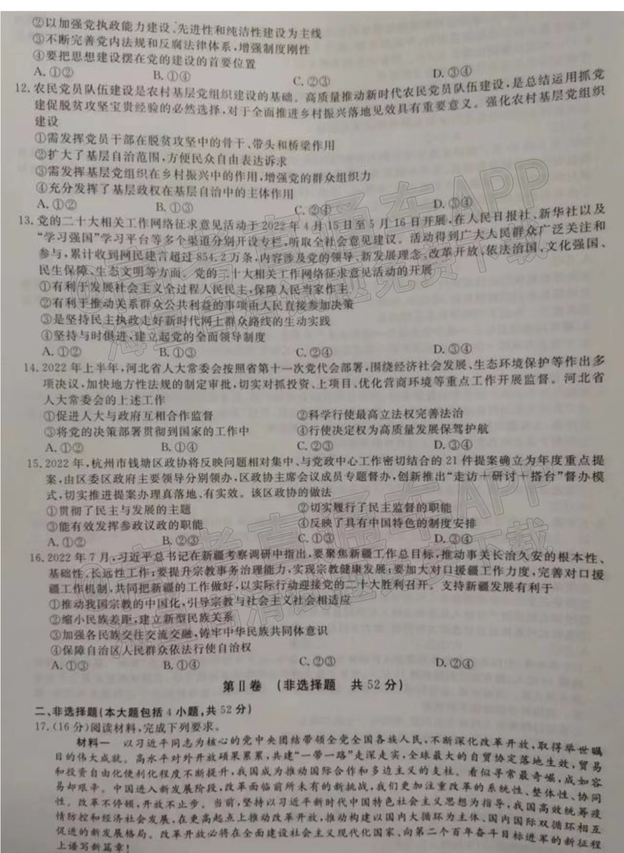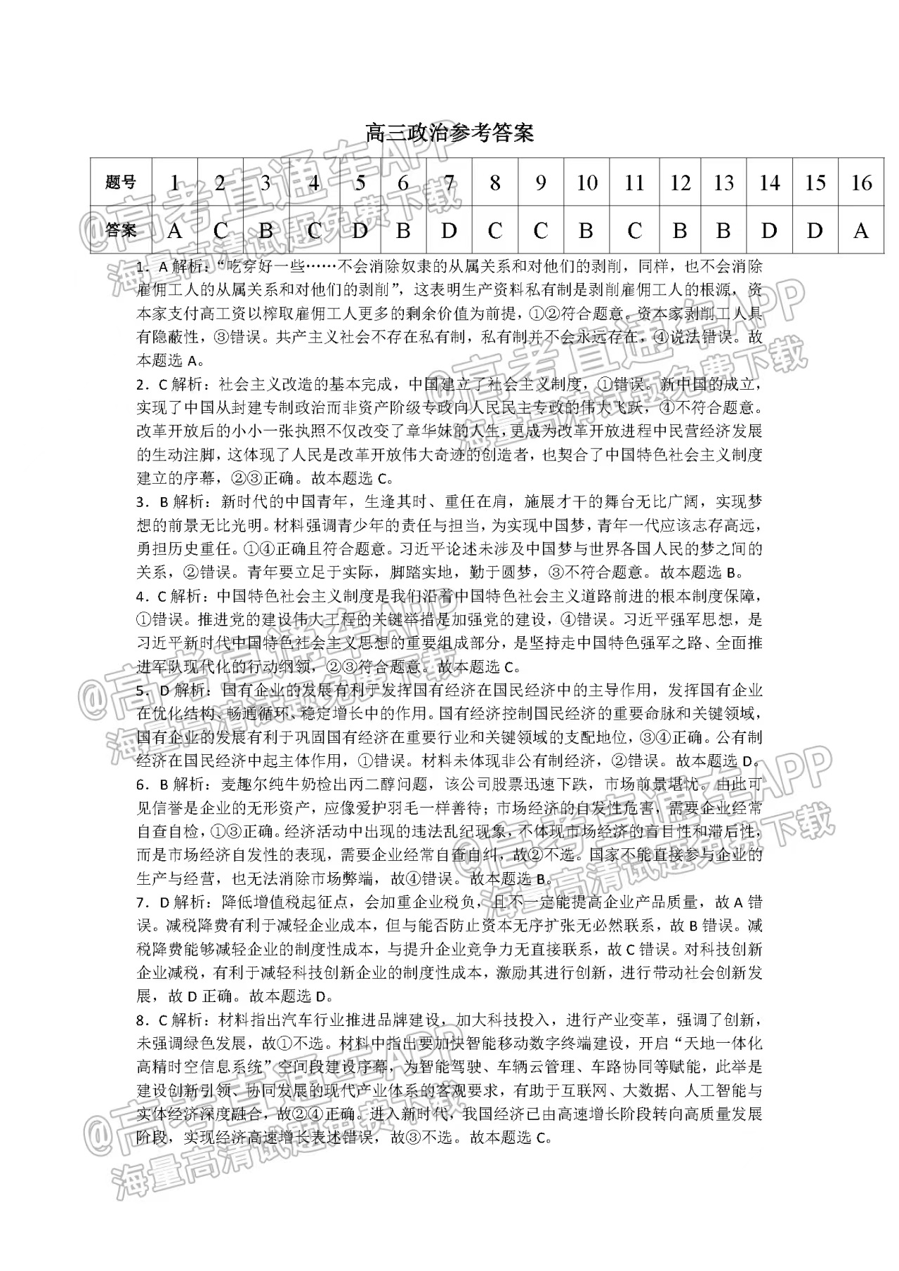 二、2023湖南三湘名校联盟高三第一次联考政治答案