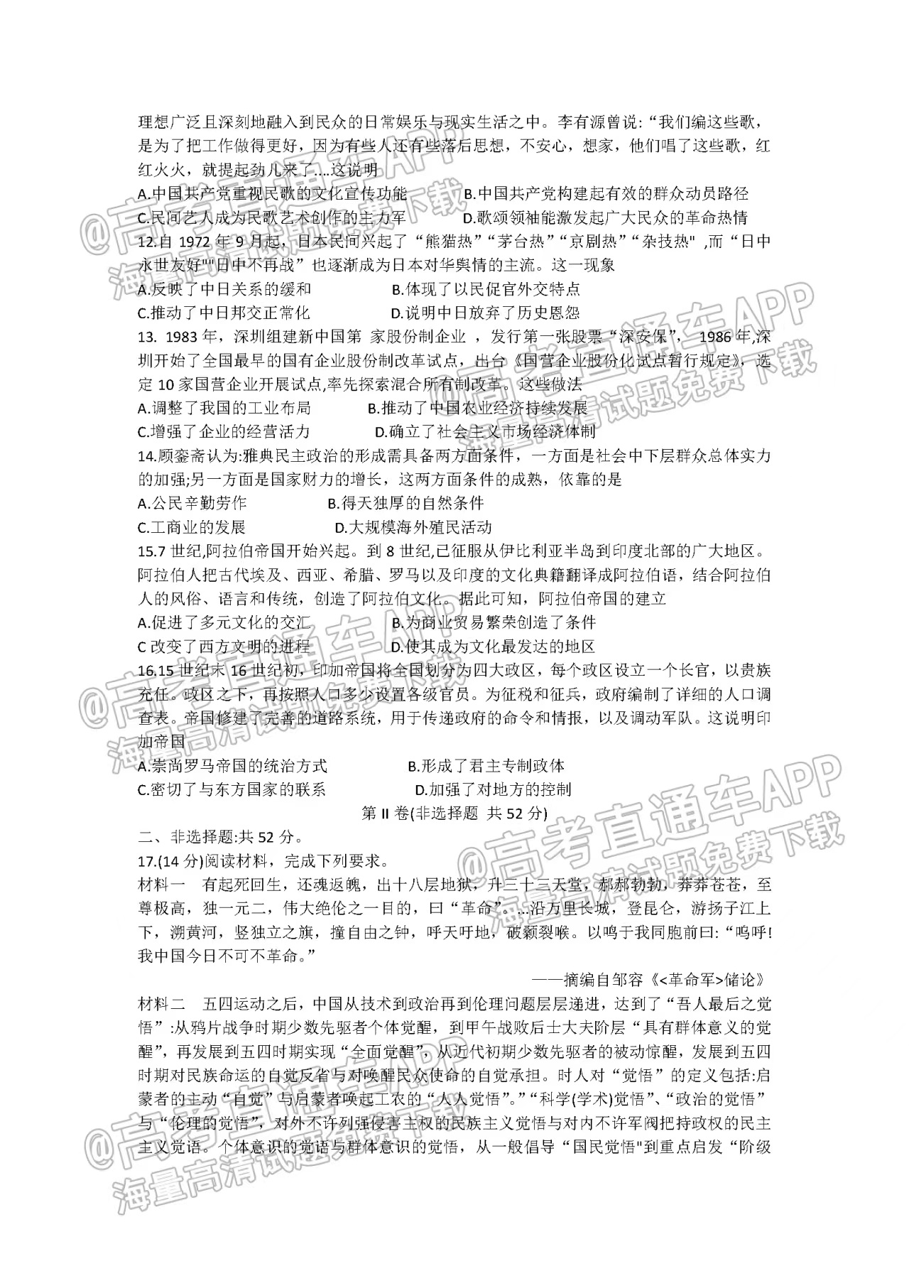 八、2023湖南三湘名校第一次联考历史试卷及解析(点击下方网址)