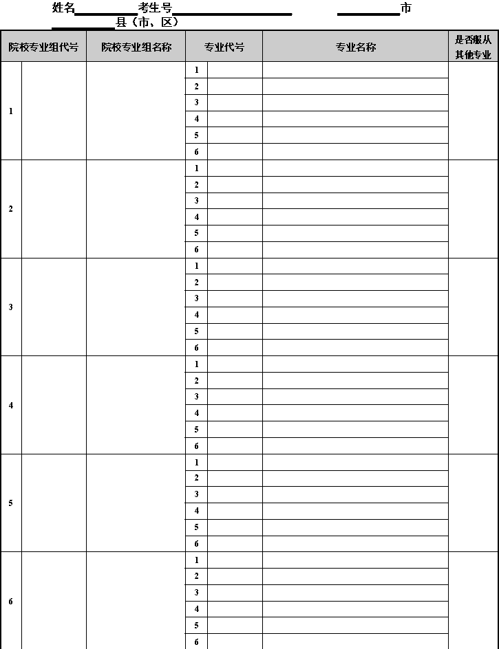 其中本科批、高职专科批采用45个院校专业组志愿,每个志愿内含6个专业志愿及1个是否服从专业调剂选项。下面是45个志愿的填报样表真实模板,可供2025届考生参考: