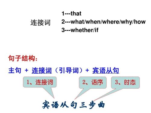 由whether/ if和特殊疑问词引导的宾语从句要用陈述语序,原来的倒装语序改成陈述语序时注意相应的助动词和动词的变化等。