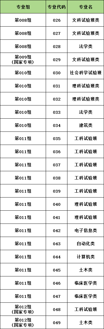 全国各大学在吉林招生的专业代码各不相同,一般而言,专业代码为3位数,同一专业不同专业方向的代码也会有差异。以清华大学为例,第011专业组电子信息类专业代码是042、自动化类专业代码是043、计算机类专业代码是044等。篇幅有限,这里仅列举清华大学的本科志愿填报专业代码,以供参考: